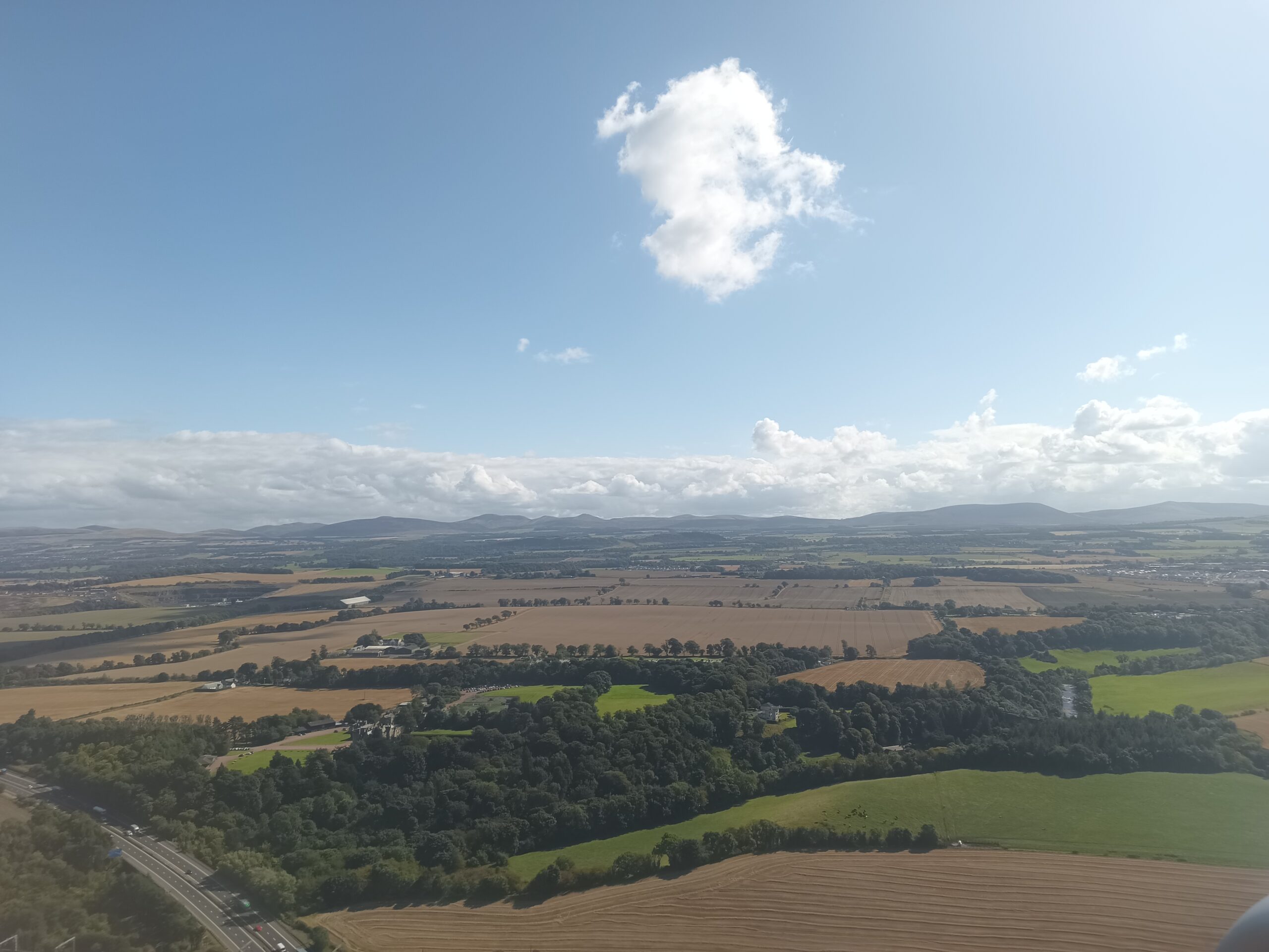 Décollage à 12h50 de l’aéroport de Béziers, dans la grisaille, arrivée à Édimbourg à 14h20 heure locale après 2h30 de vol, il fait soleil !