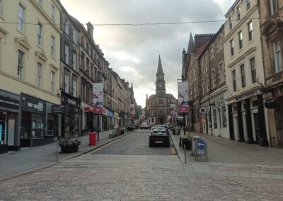 Alicia vient me retrouver à l’hôtel et nous marchons vers le centre-ville de Stirling, à 10mn à peine de l’hôtel, vers le Nicky-Tams, le pub où travaille Laura, une de ses colocataires et amie. Il est déjà 18h !