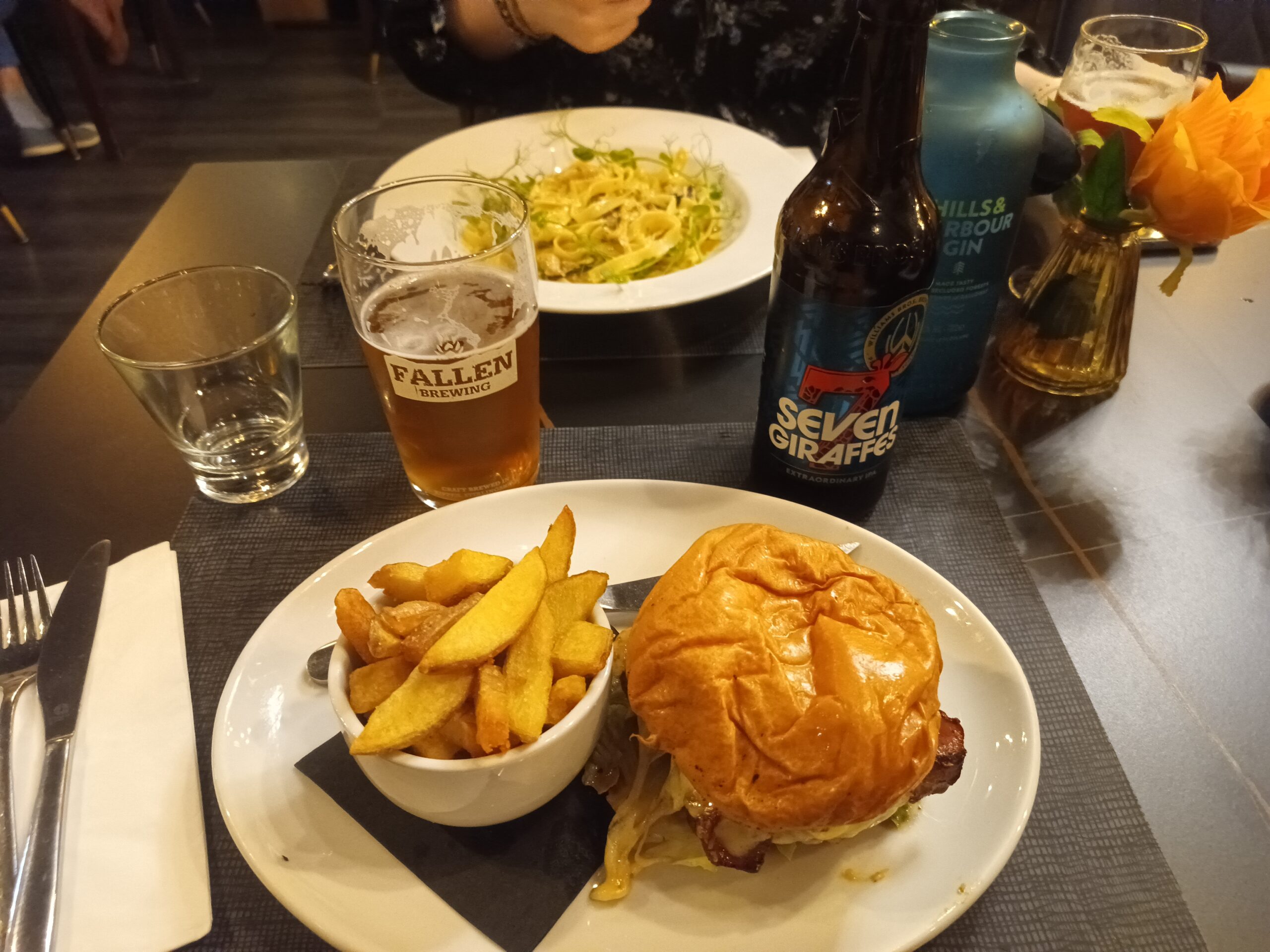 Ensuite, petite balade dans les rues de Stirling jusqu’à l’excellent restaurant le « Brea ». Tagliatelles au fromage et pesto pour Alicia et hamburger maison et bonnes bières pour moi.
