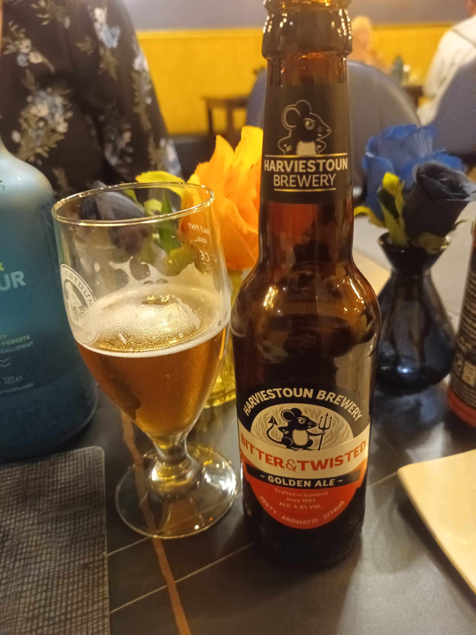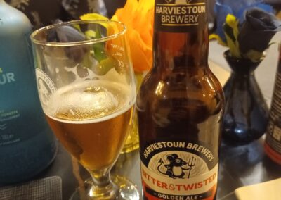 Je me désaltère avec une pinte de bonne bière écossaise ! Je l’ai bien mérité après cette dure journée de voyage !