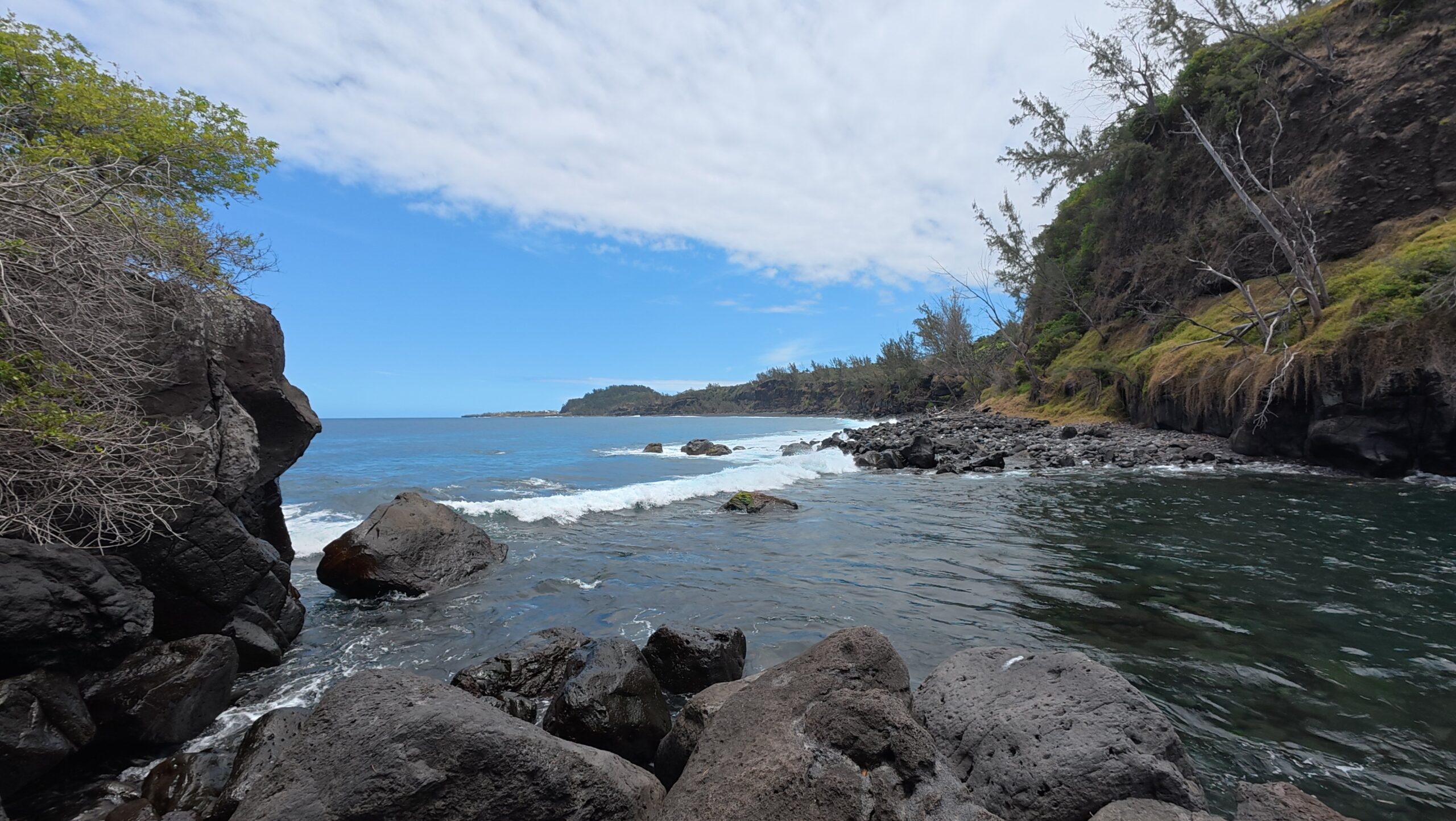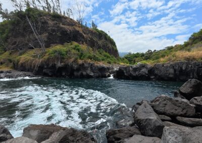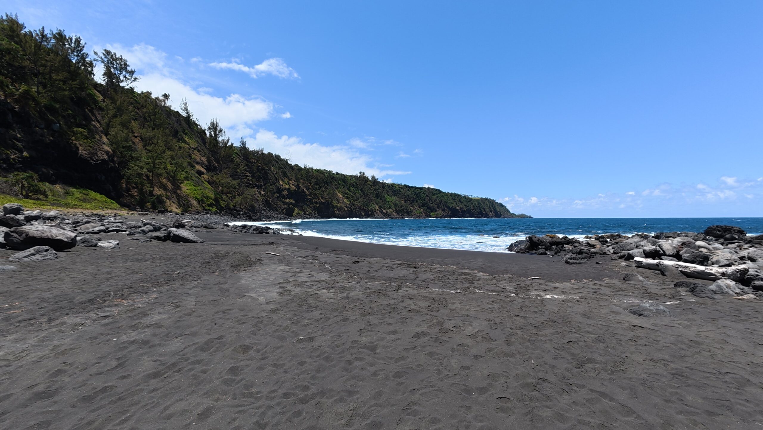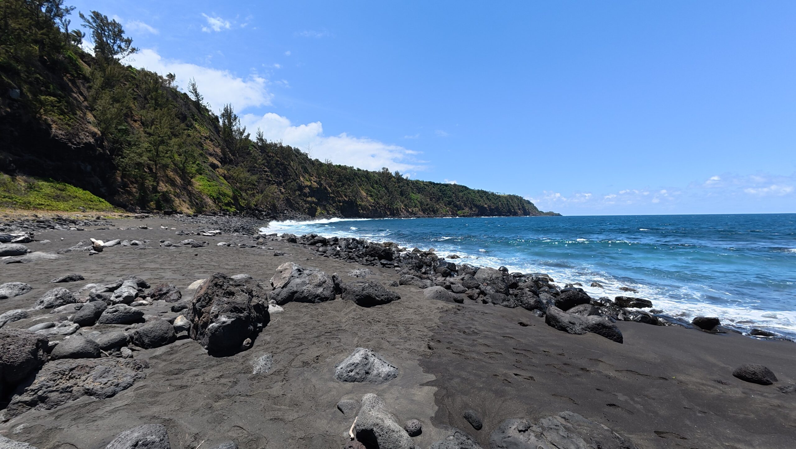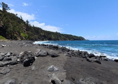 Ensuite direction la Plage de sable noir de Vincendo qui voit sa cascade « débouler » les jours de grosses pluies.