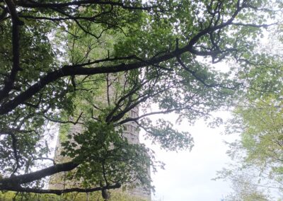 Je gare la voiture sur le parking au pied de la colline et je prends le sentier qui mène à la tour. Ça grimpe fort !