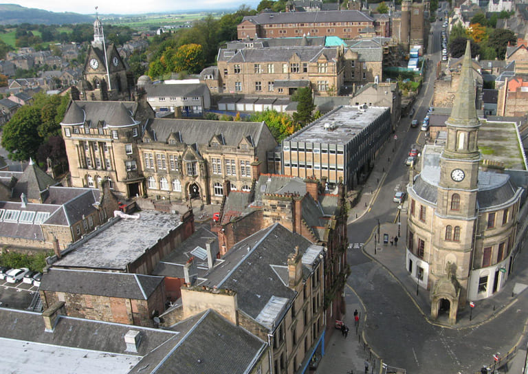 Retour à l’hôtel pour déposer la voiture et balade à pied vers le centre-ville de Stirling.