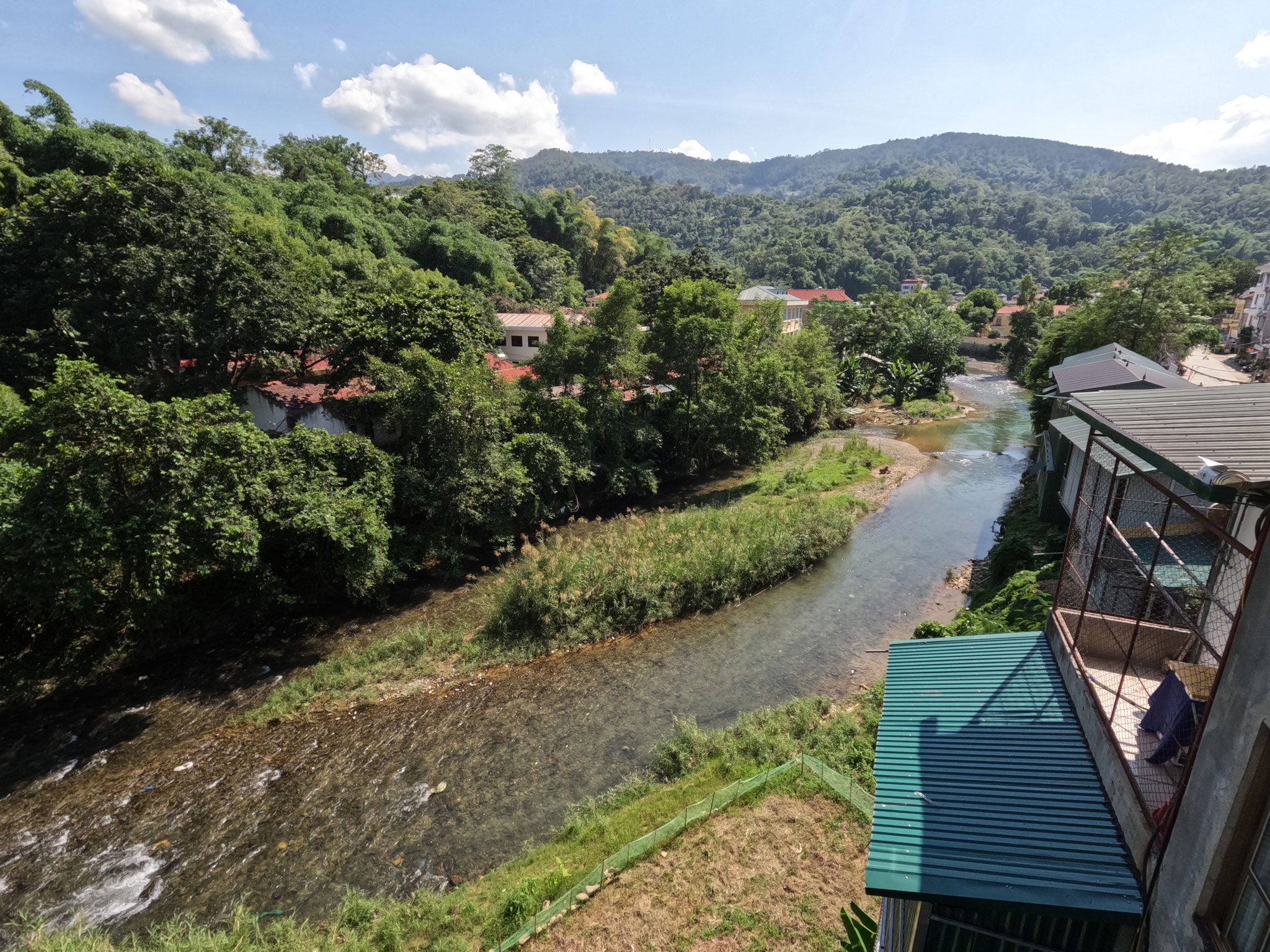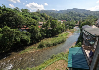 Nous arrivons enfin à notre hôtel. La chambre est simple mais assez confortable avec une toute petite terrasse qui donne sur la rivière.