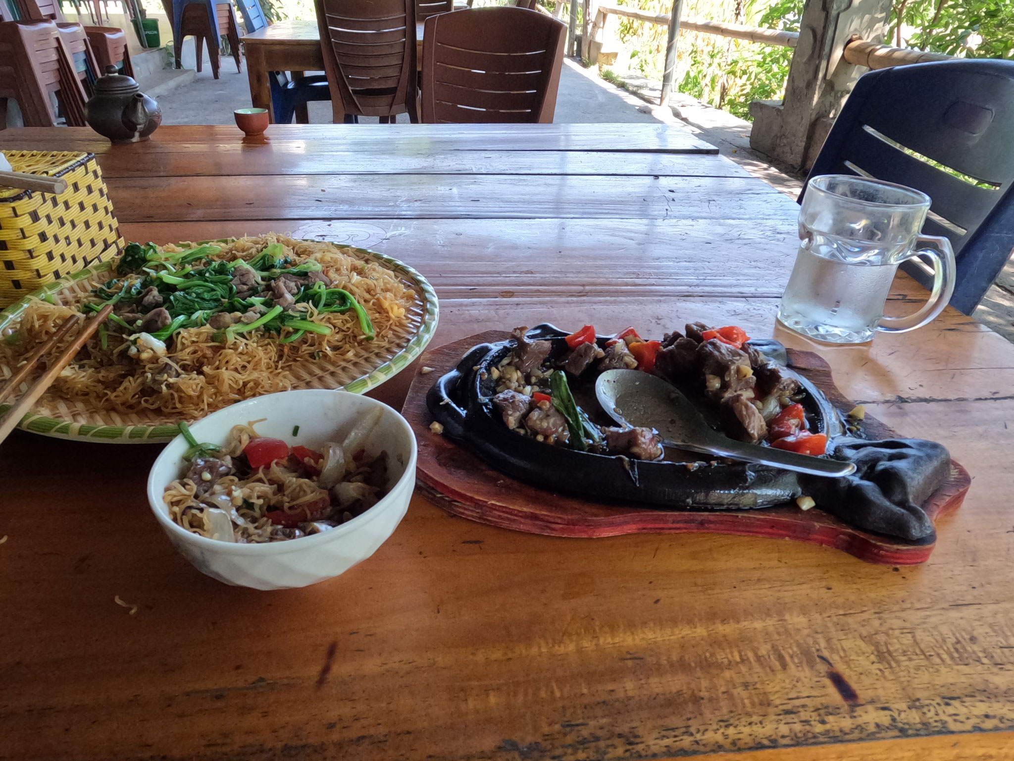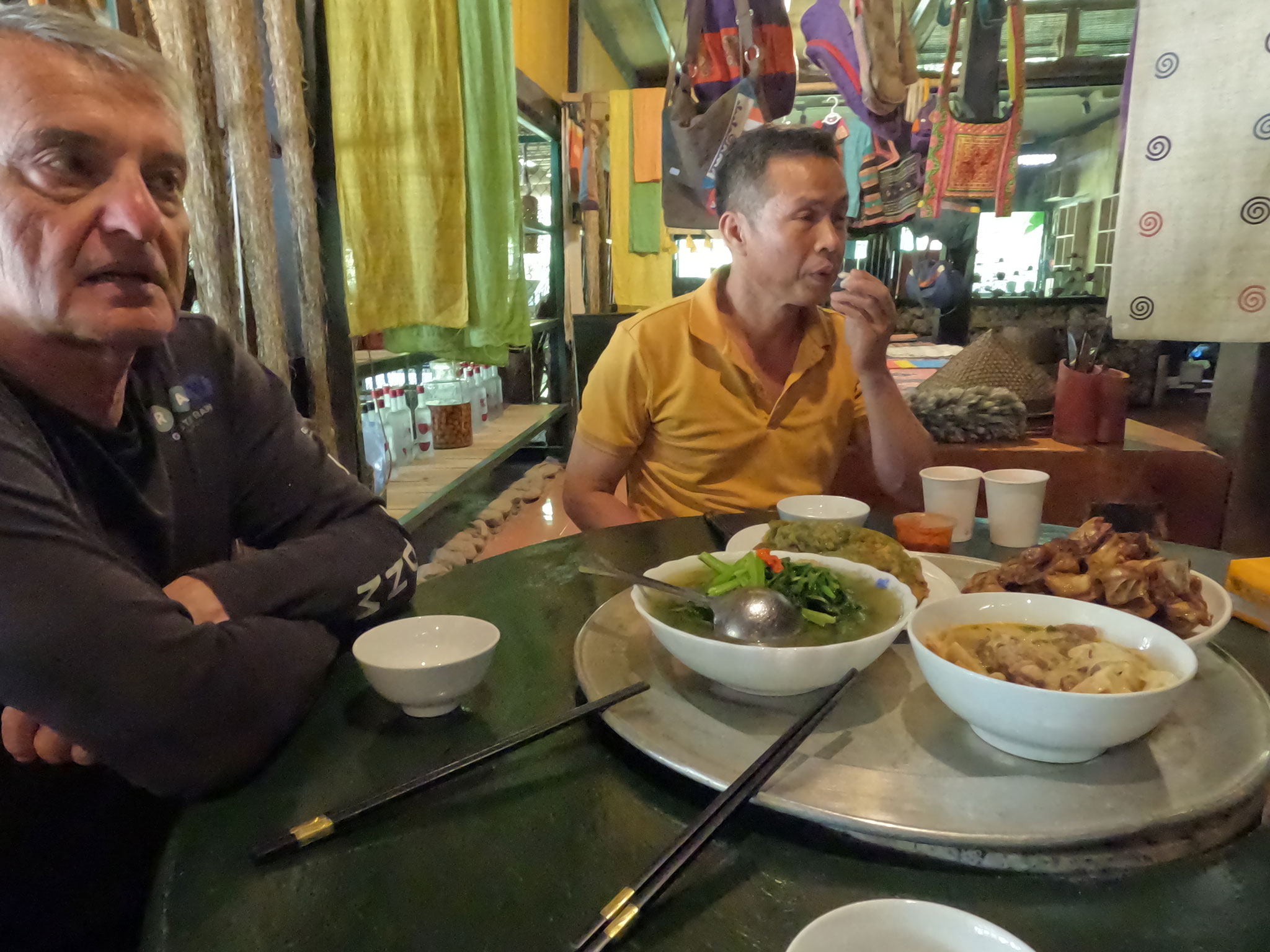 Gilles n’a pas faim car il a bien mangé ce matin. Je suis donc le seul à manger. Je ne sais pas si le gars a bien compris mais il me sert à manger pour quatre, j’ai faim mais là c’est un peu trop pour moi !