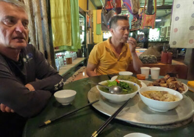 Nous arrivons enfin dans notre joli est agréable hôtel, le « Ha Giang Historic House » où nous dinons à la table de nos charmants propriétaires. Et oui, c’est parfois comme cela dans les “homestay” !