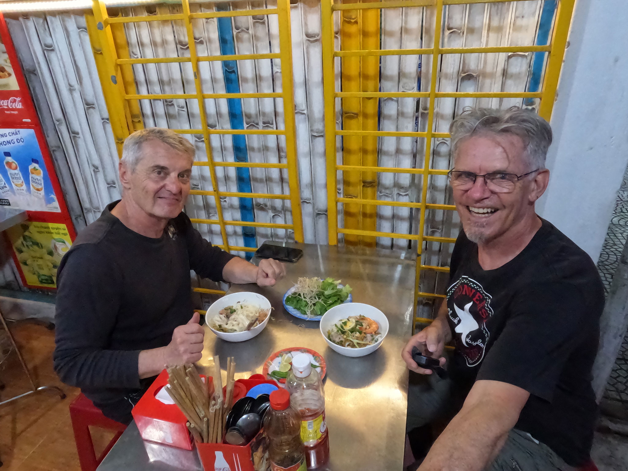 Nous en trouvons un et qui, de plus, nous sert la spécialité du coin, le “Mi Quang”. Une tuerie !
