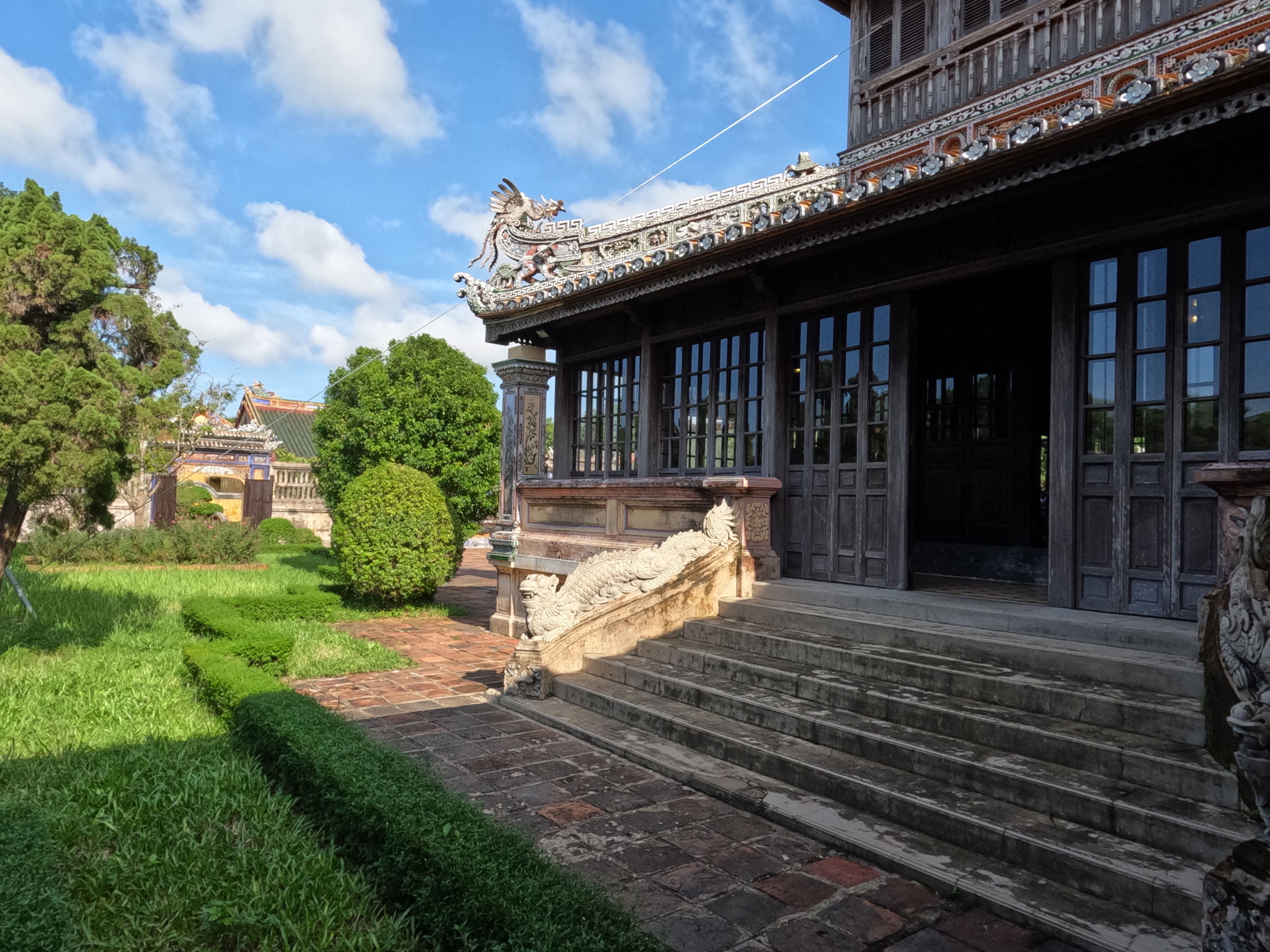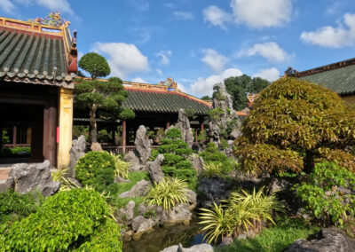 Arrivée à l’hôtel pour une petite heure de repos et nous repartons. Direction La Citadelle de Hué et au retour un petit tour au marché couvert ou nous prenons notre “déjeu-diner”. Il est 16h00 !