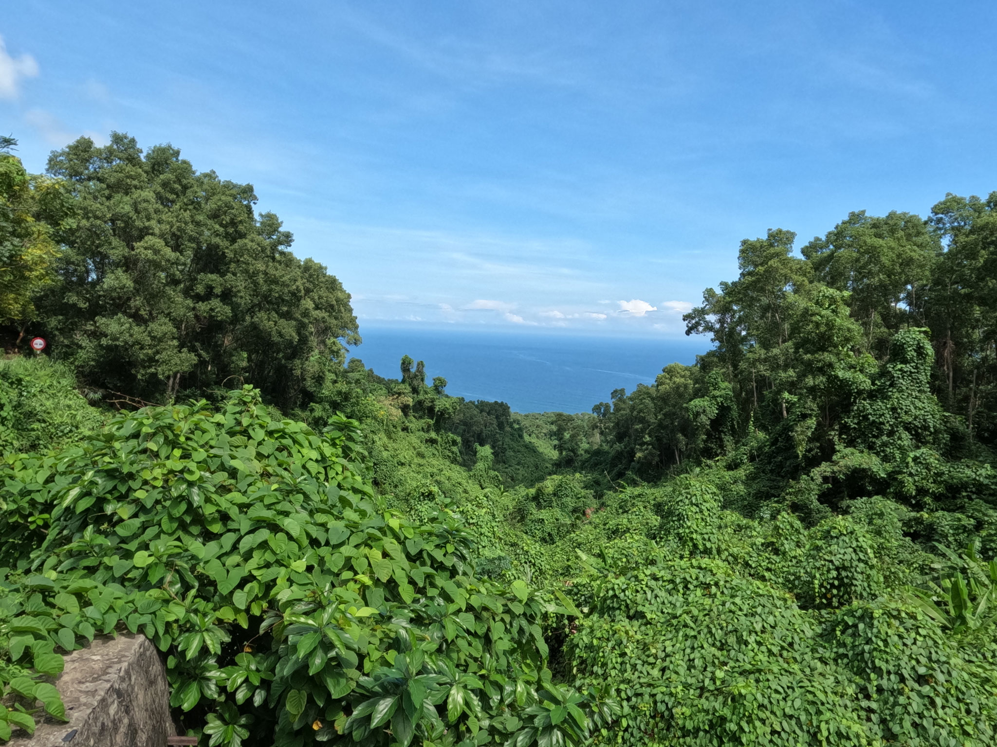 Nous nous arrêtons à nouveau au “Col des nuages”, à 500 m d’altitude pour nous rafraîchir et nous désaltérer. Quel magnifique panorama !