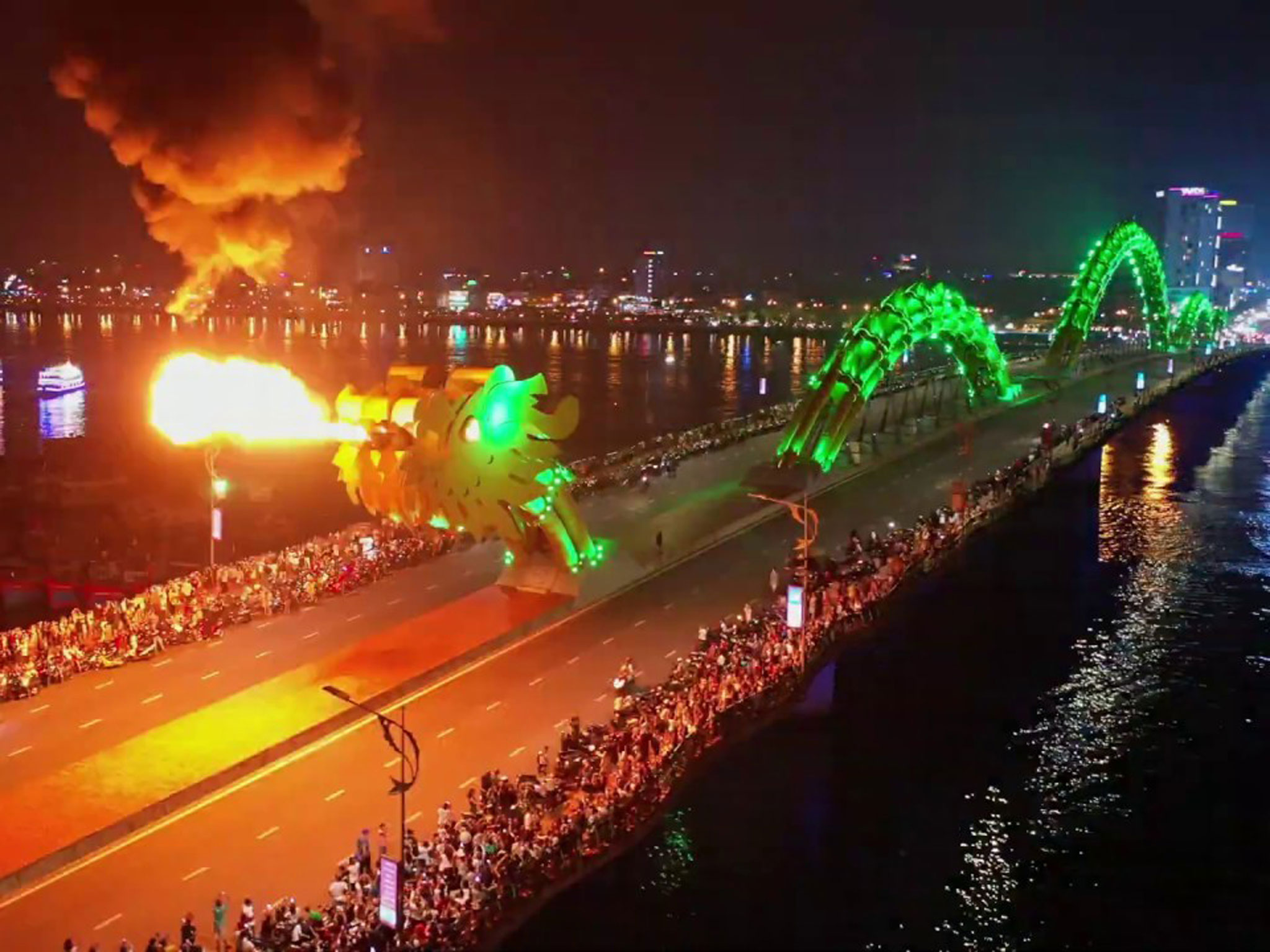 Ce soir nous avons prévu d’aller voir “Le pont du Dragon” qui crache le feu mais avant il faut diner.