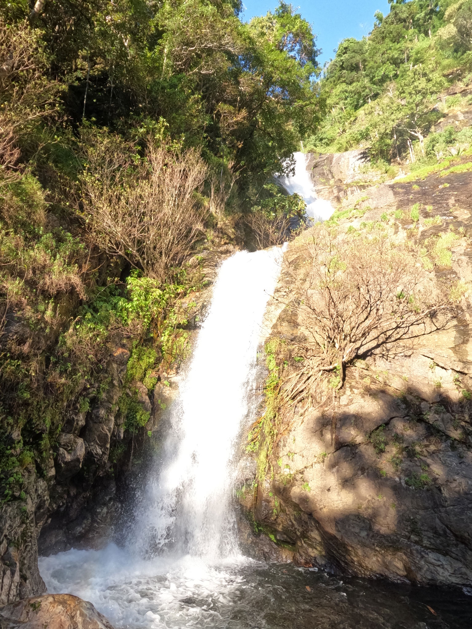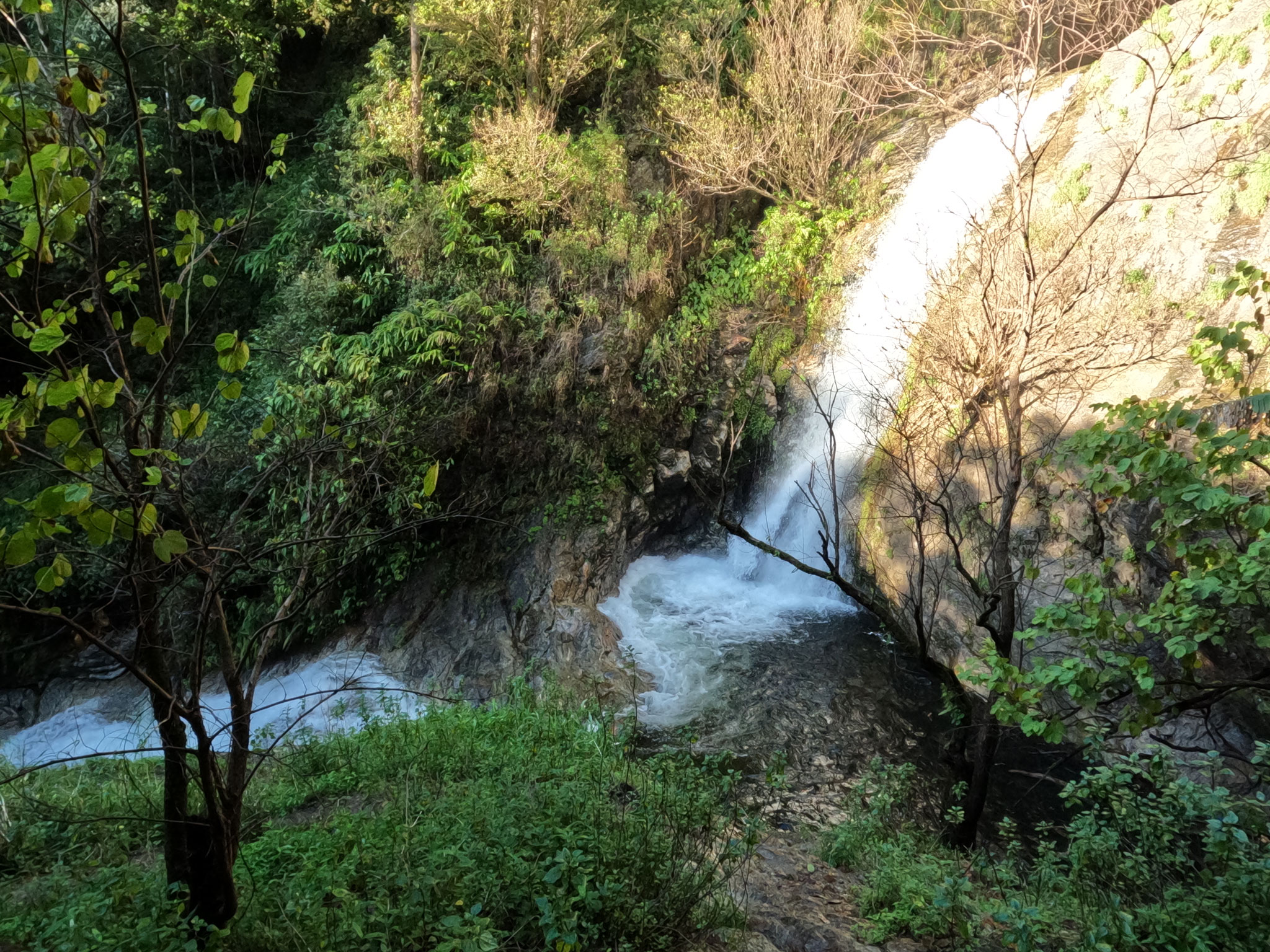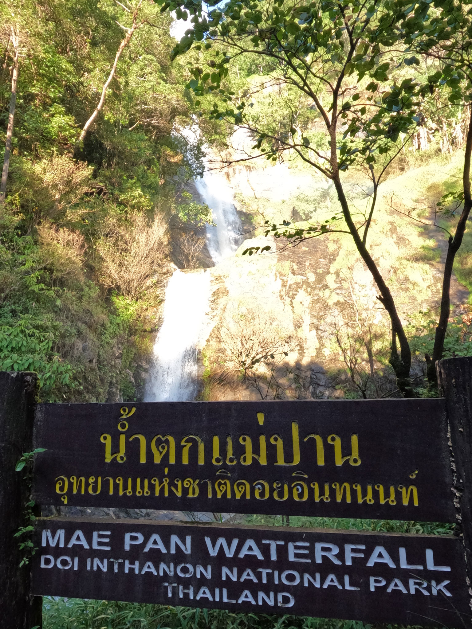 Petite pause à l’hôtel et nous repartons pour voir la grande et belle cascade de Maé Pan. Celle là, elle se mérite, 1200 m aller retour sur un sentier étroit et plutôt dangereux, surtout la dernière partie à escalader sur des rochers glissants mais cela en valait vraiment la peine. Magnifique !