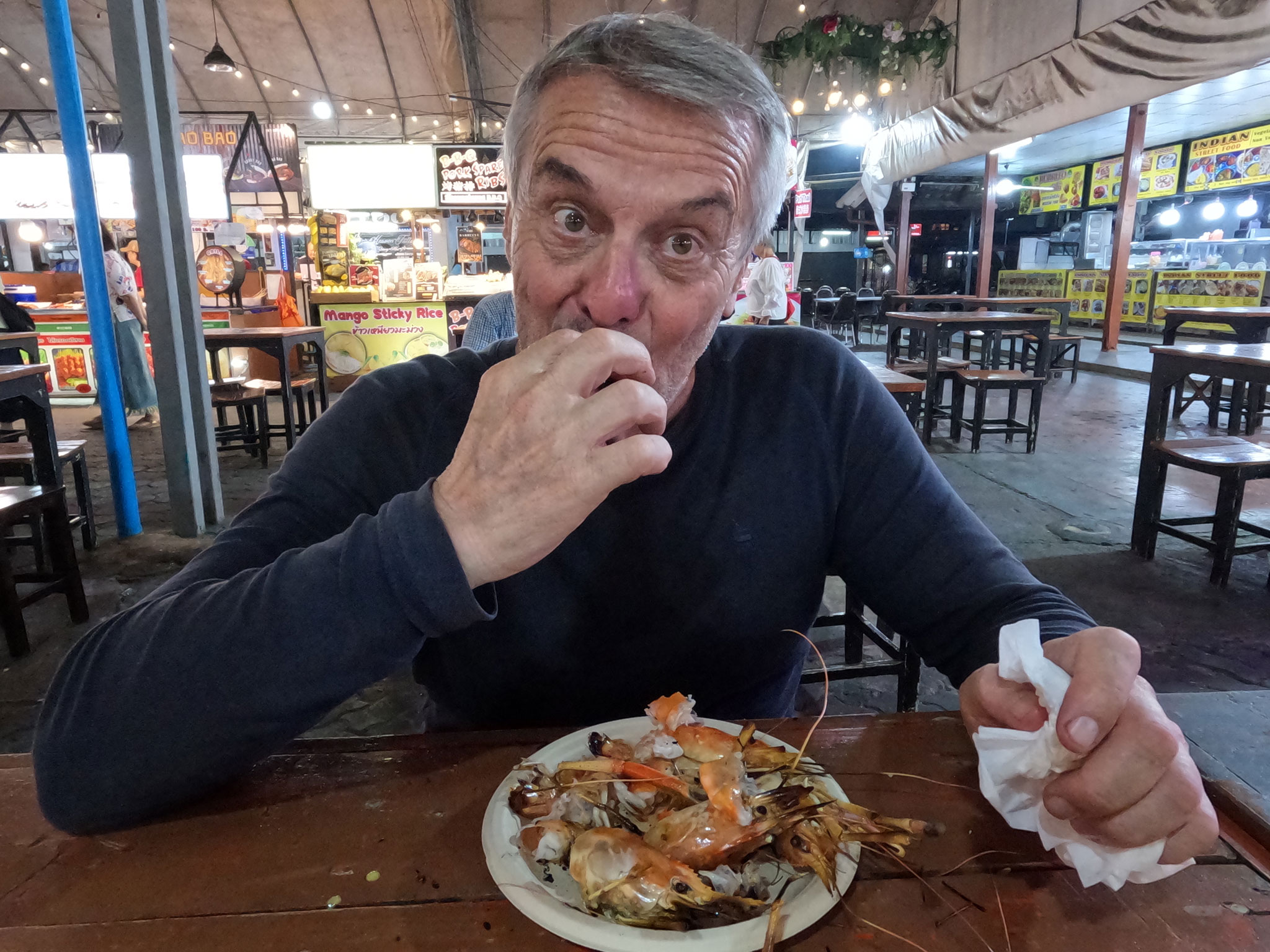 Un petit tour au centre commercial “Maya” et ensuite direction le “Night Market” pour diner. Humm, c’est bon, Gilles s’en lèche les doigts !