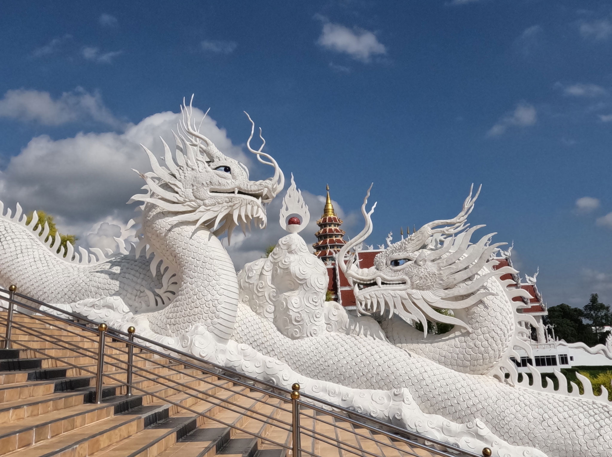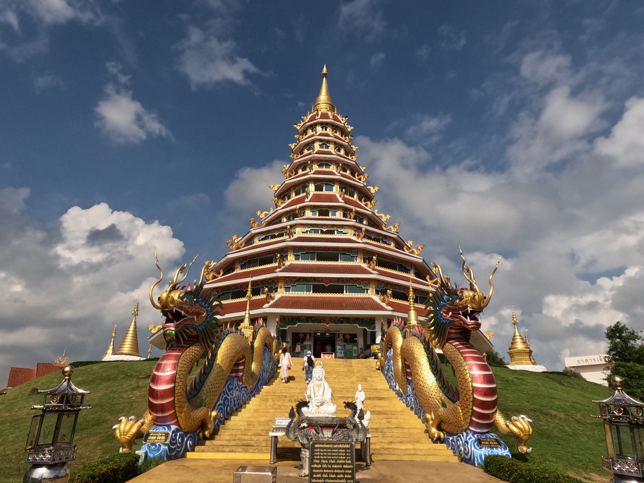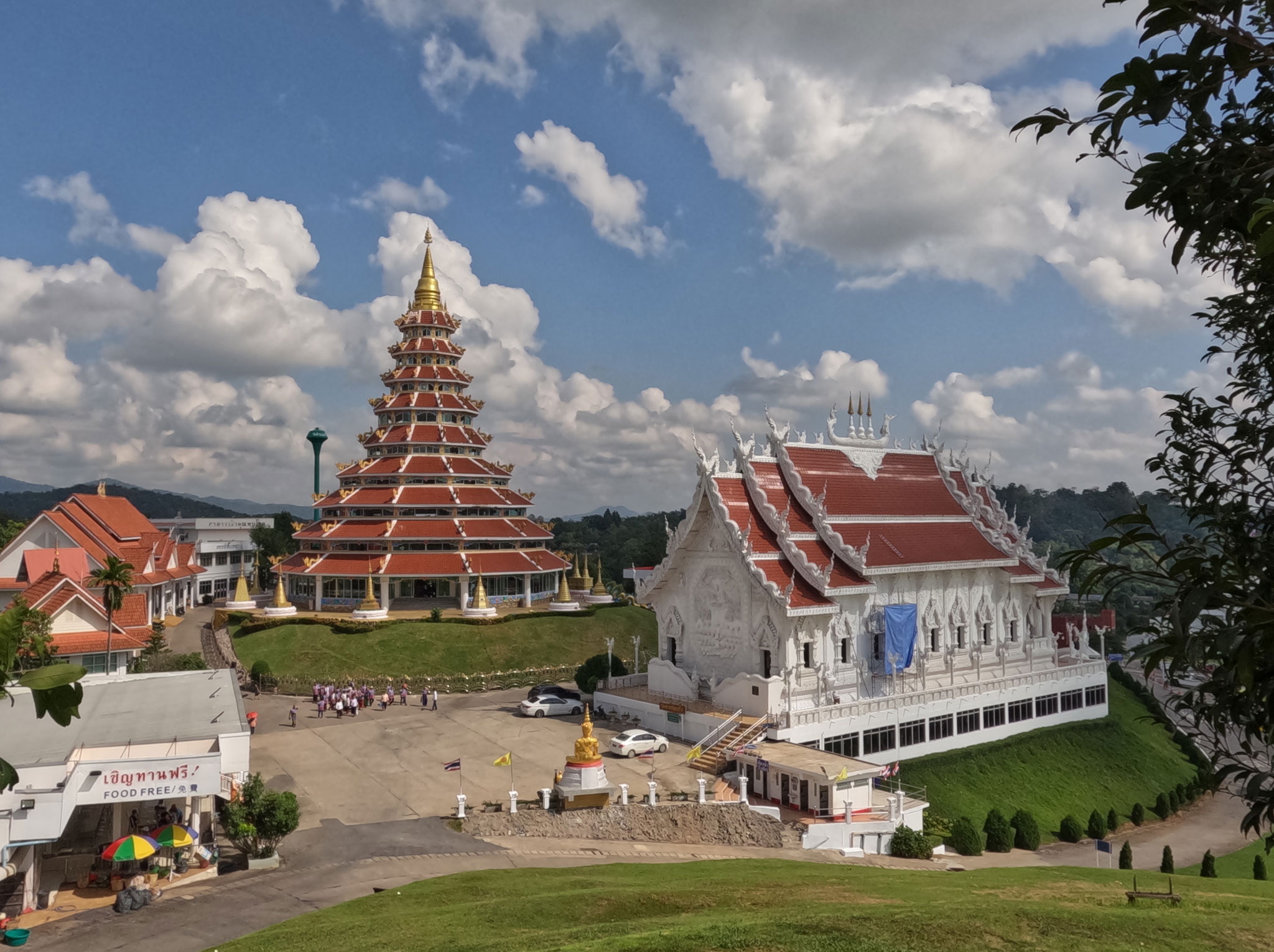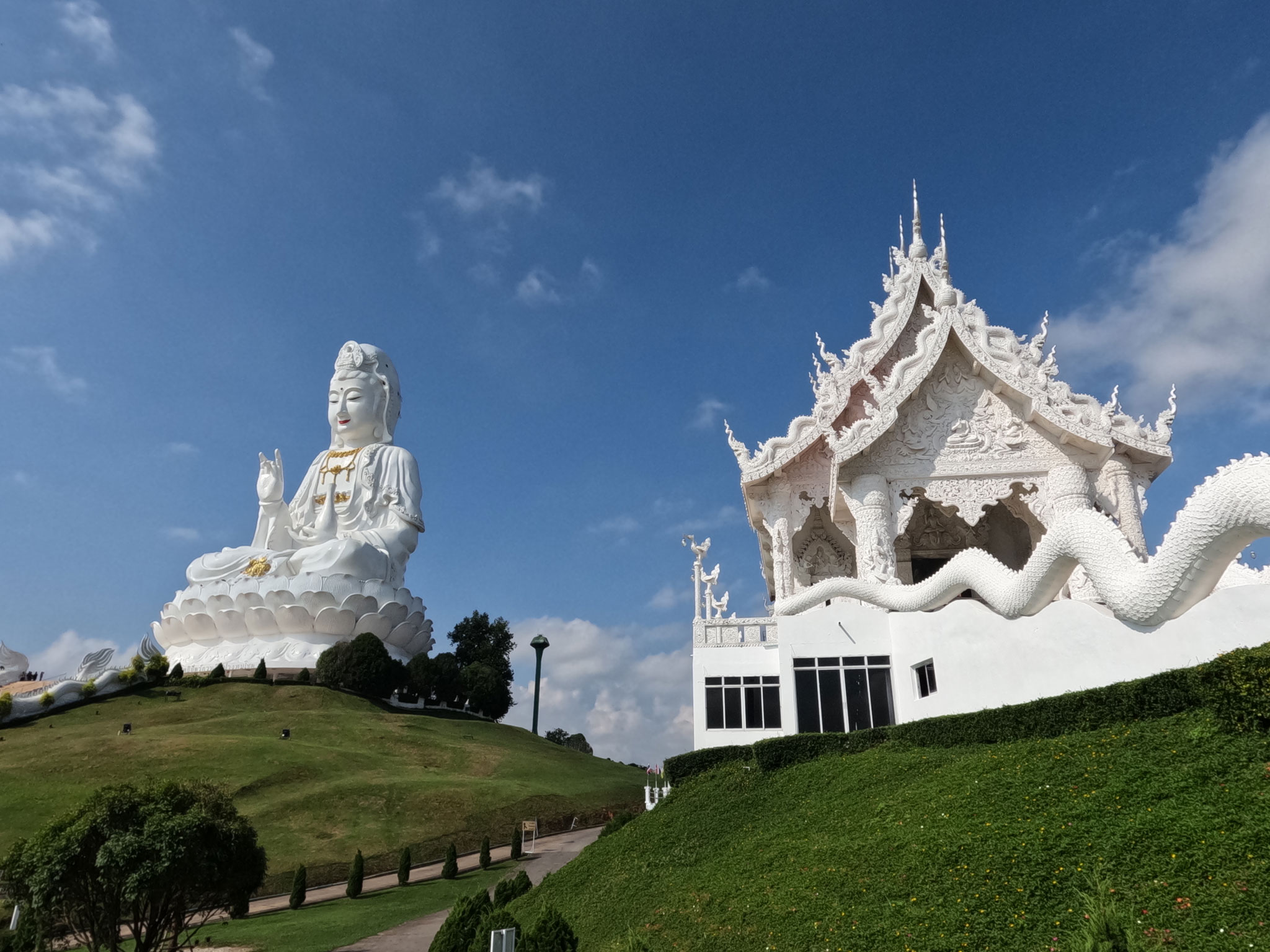 Aujourd’hui, en visitant le temple de Wat Huay Pla Kang, nous avons eu l’opportunité et la chance d’être invité à prendre une photo avec Phra Ajarn Phob Chok, le moine concepteur de ce magnifique site.