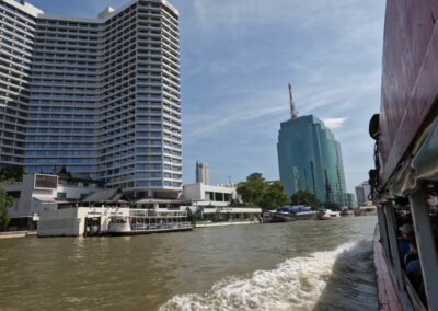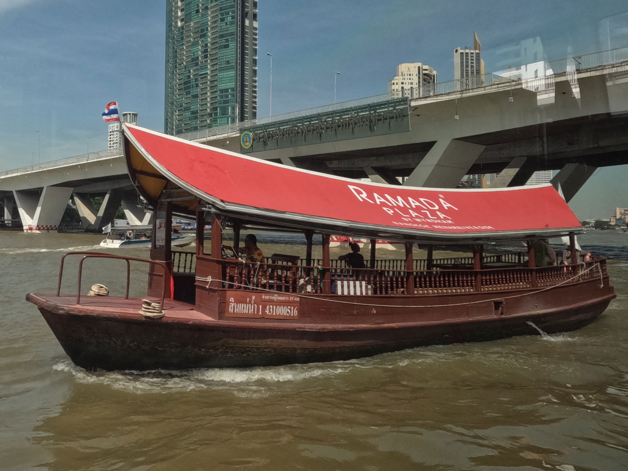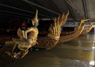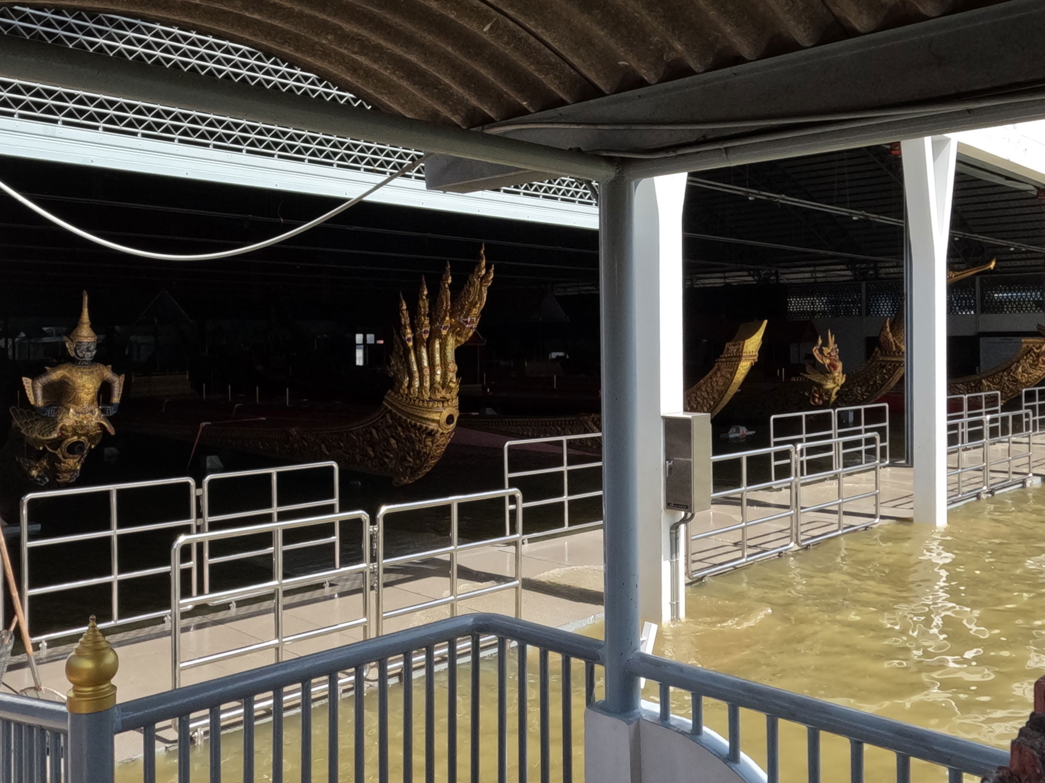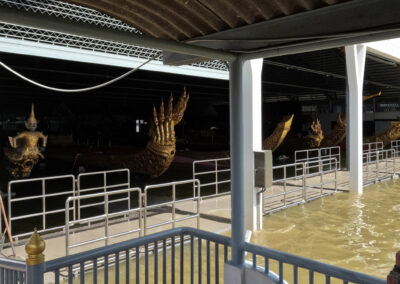 Ensuite nous prenons le bateau et remontons le Chao Phraya pour aller visiter le Musée des Barges Royales.