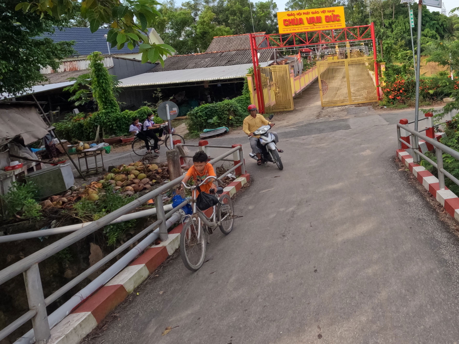 Nous reprenons notre route avec ses nombreux ponts qui enjambent la multitude de canaux et de rivières du delta du Mékong.