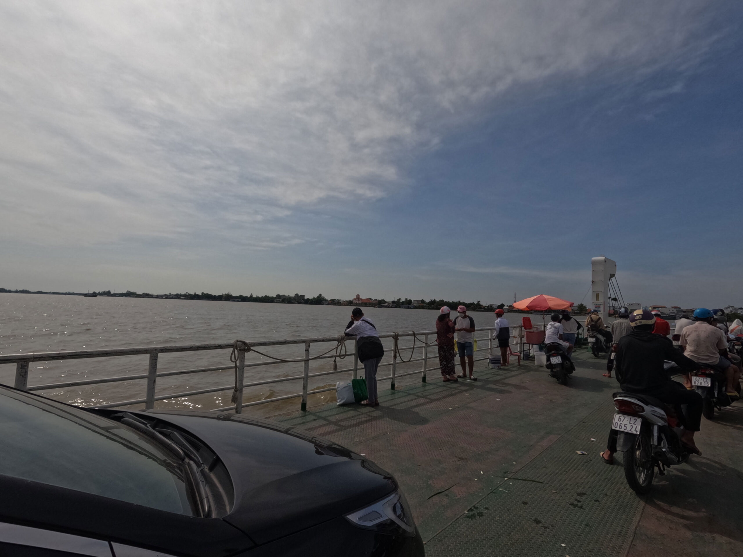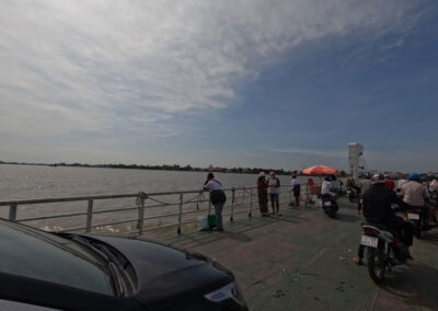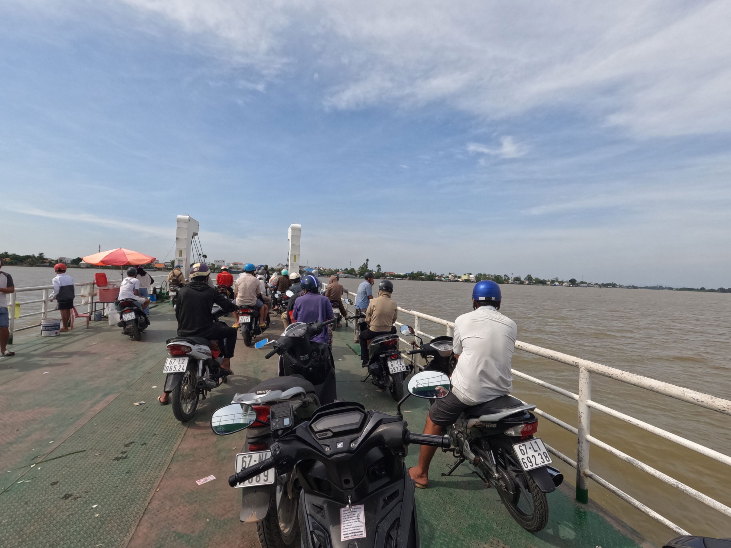 Passage obligé sur un bac transbordeur avant de reprendre la route qui nous emmène jusqu’à notre hôtel, Le « Sang Như Ngọc Resort ».