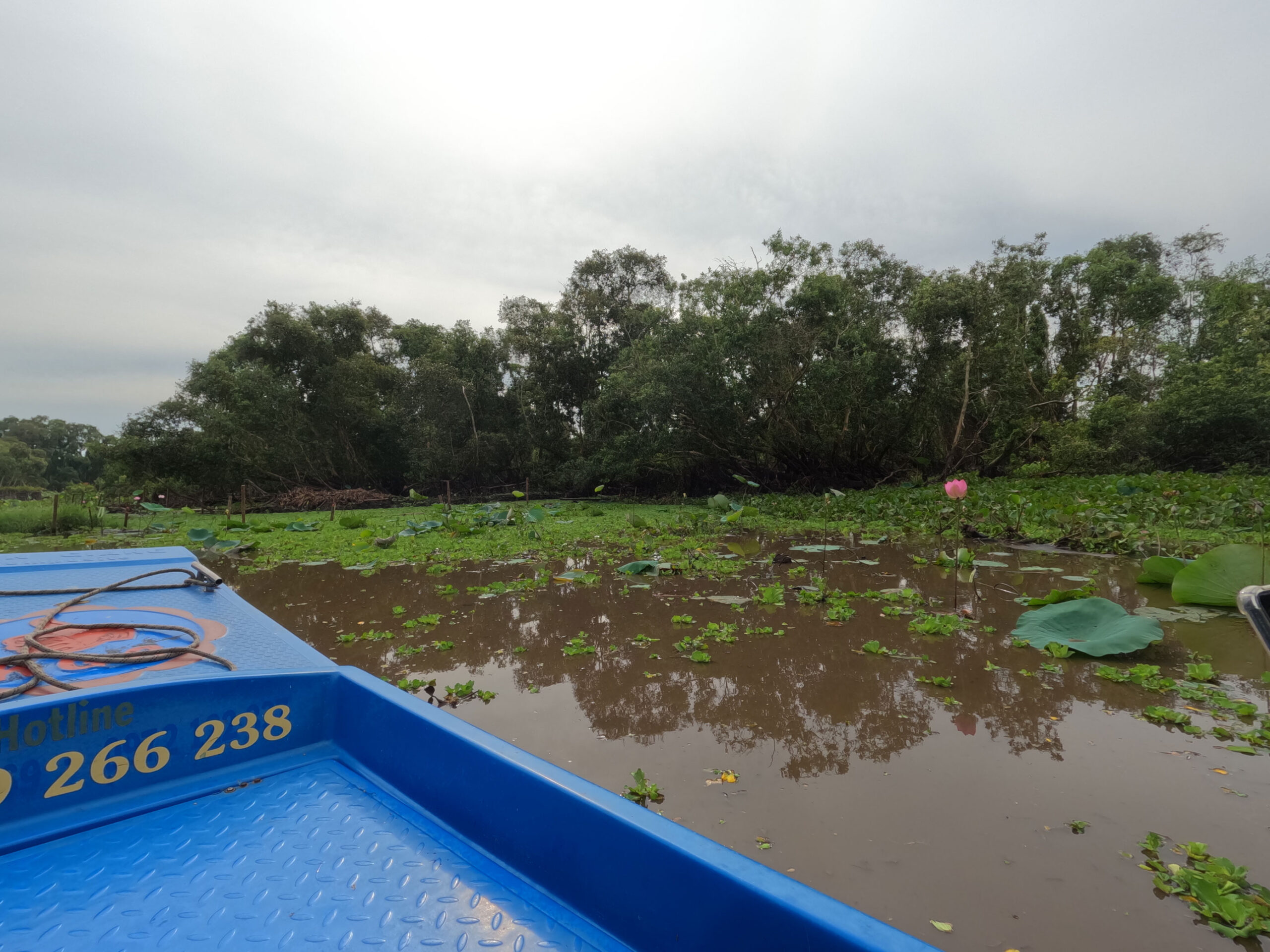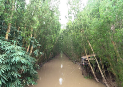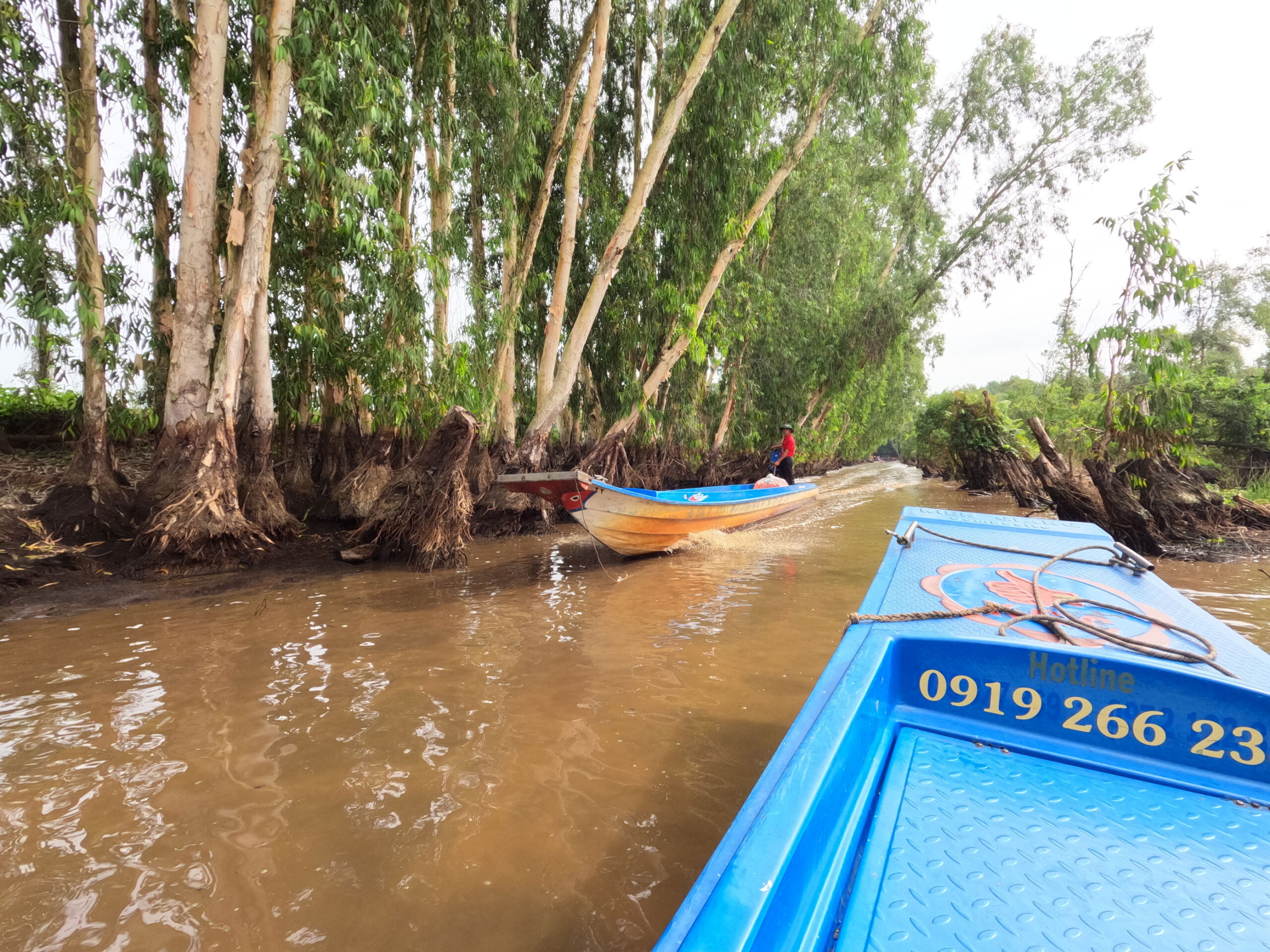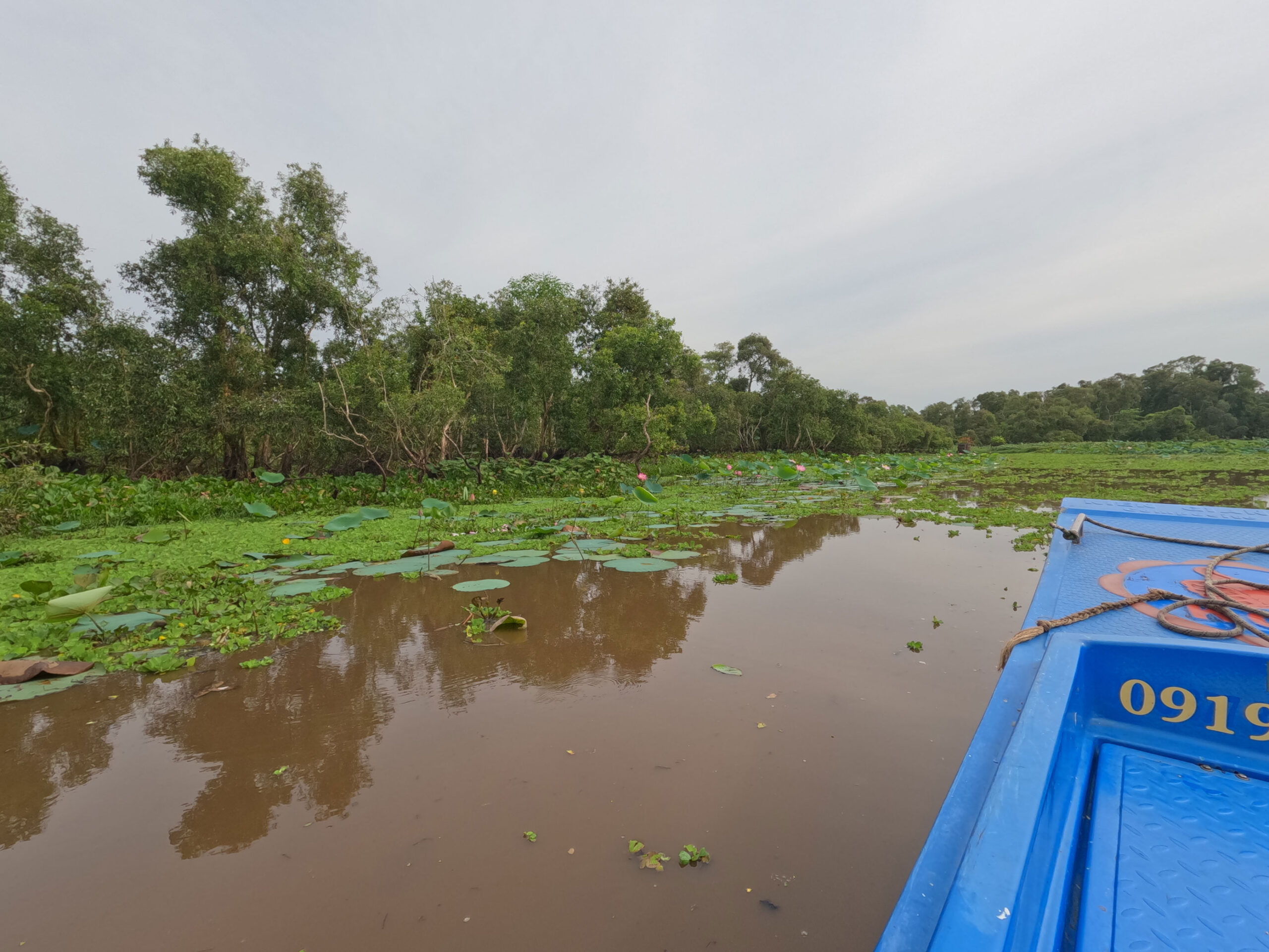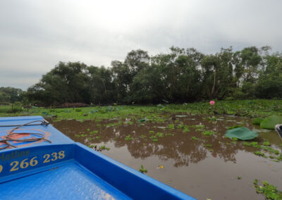 Aujourd’hui nous partons visiter La forêt de cajeputiers de Tra Su. C’est une jolie petite balade en « longs boats » à faire dans les méandres du delta.