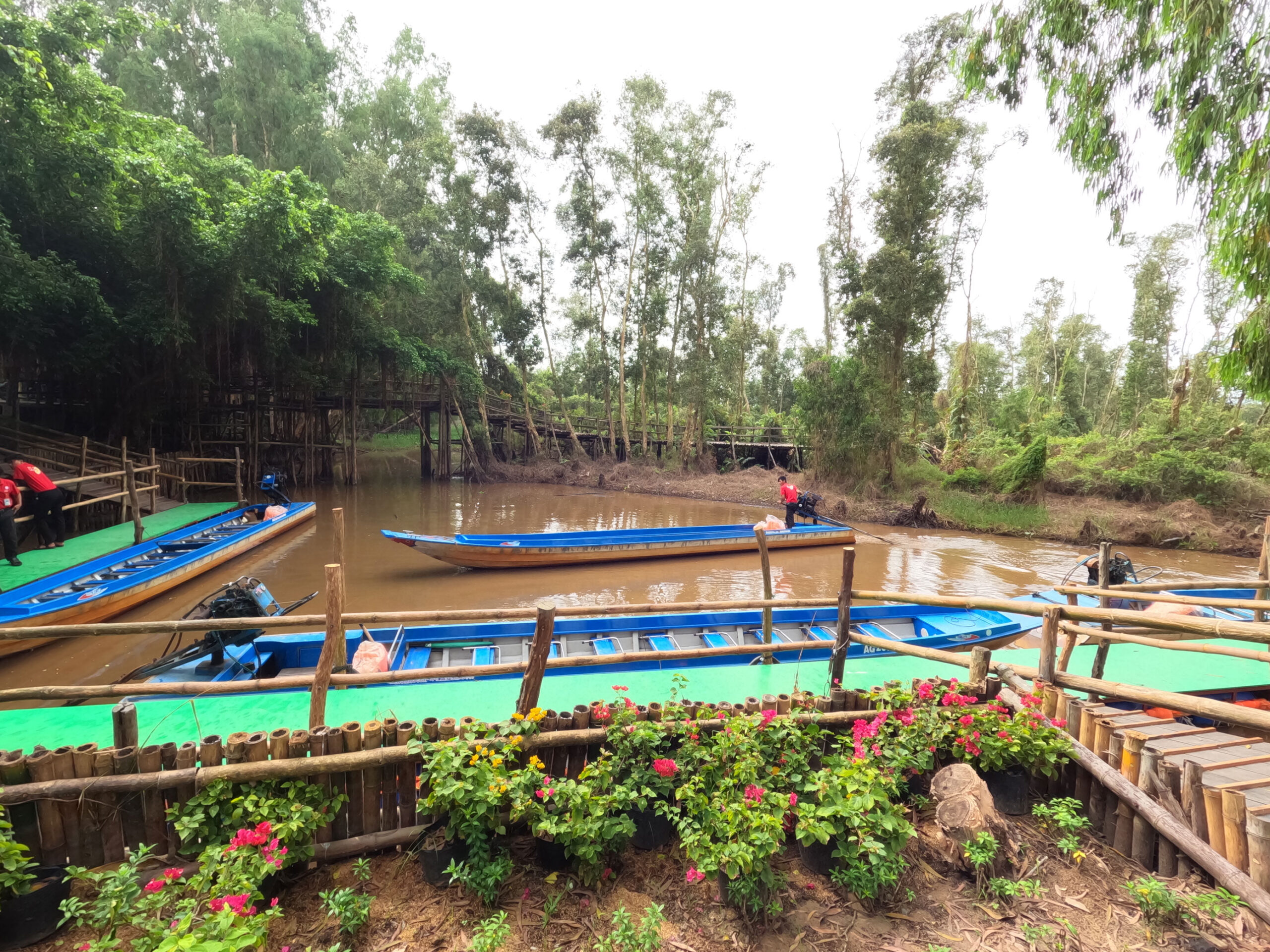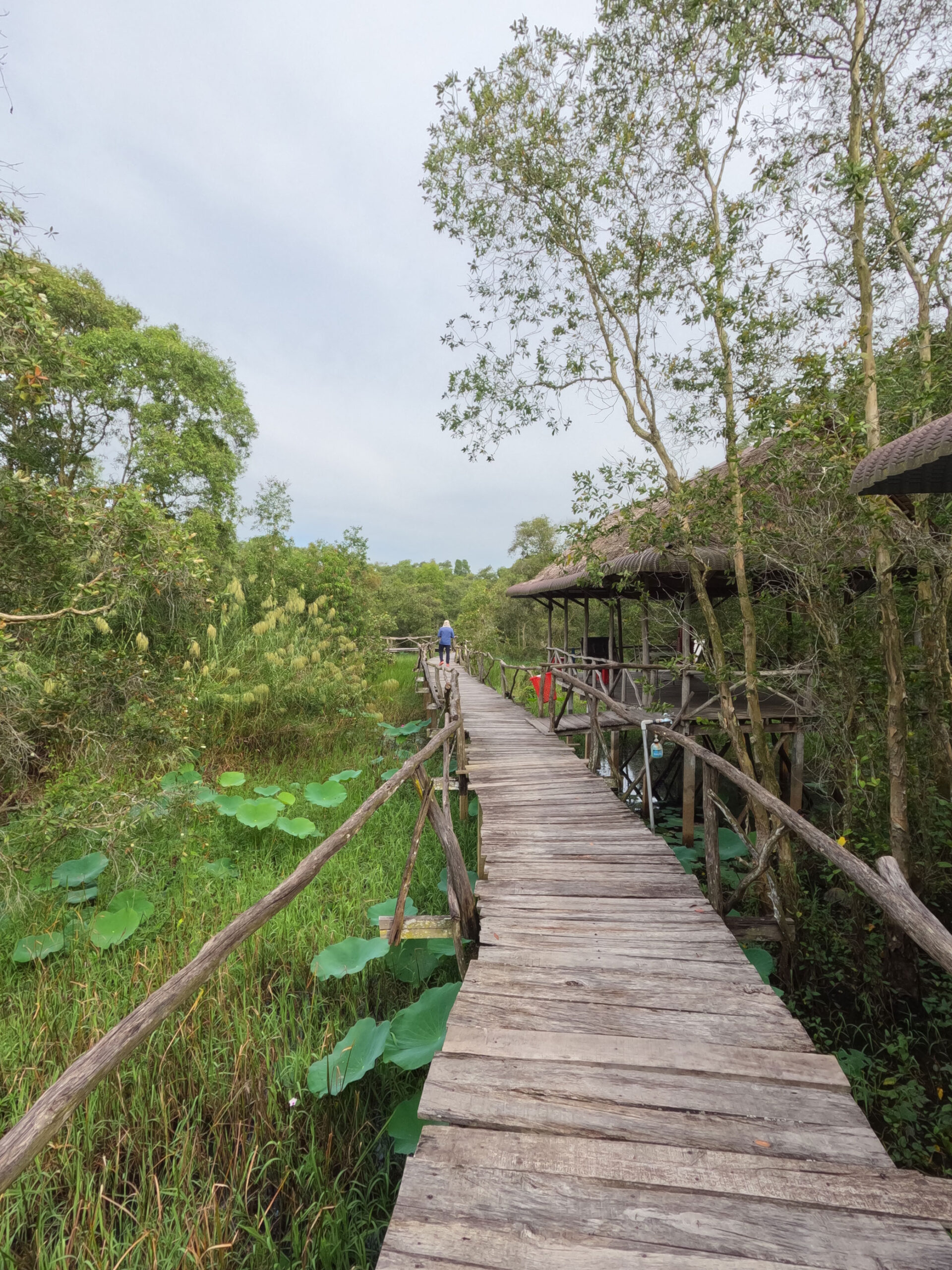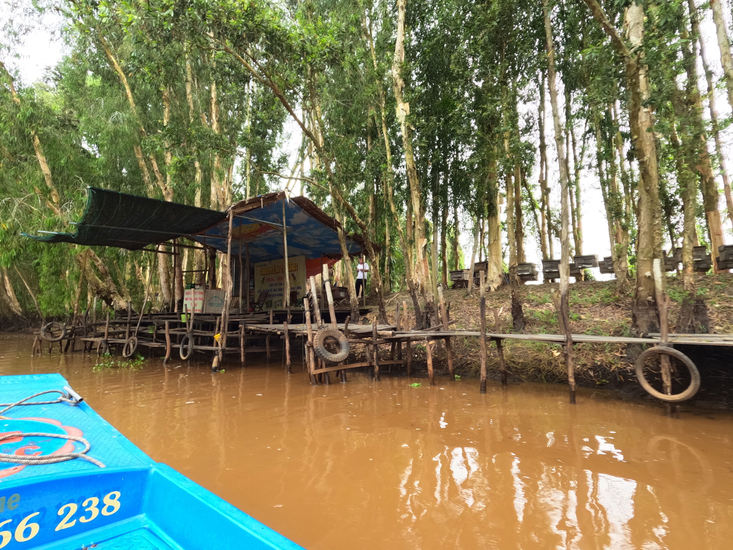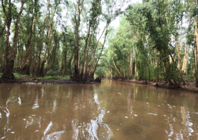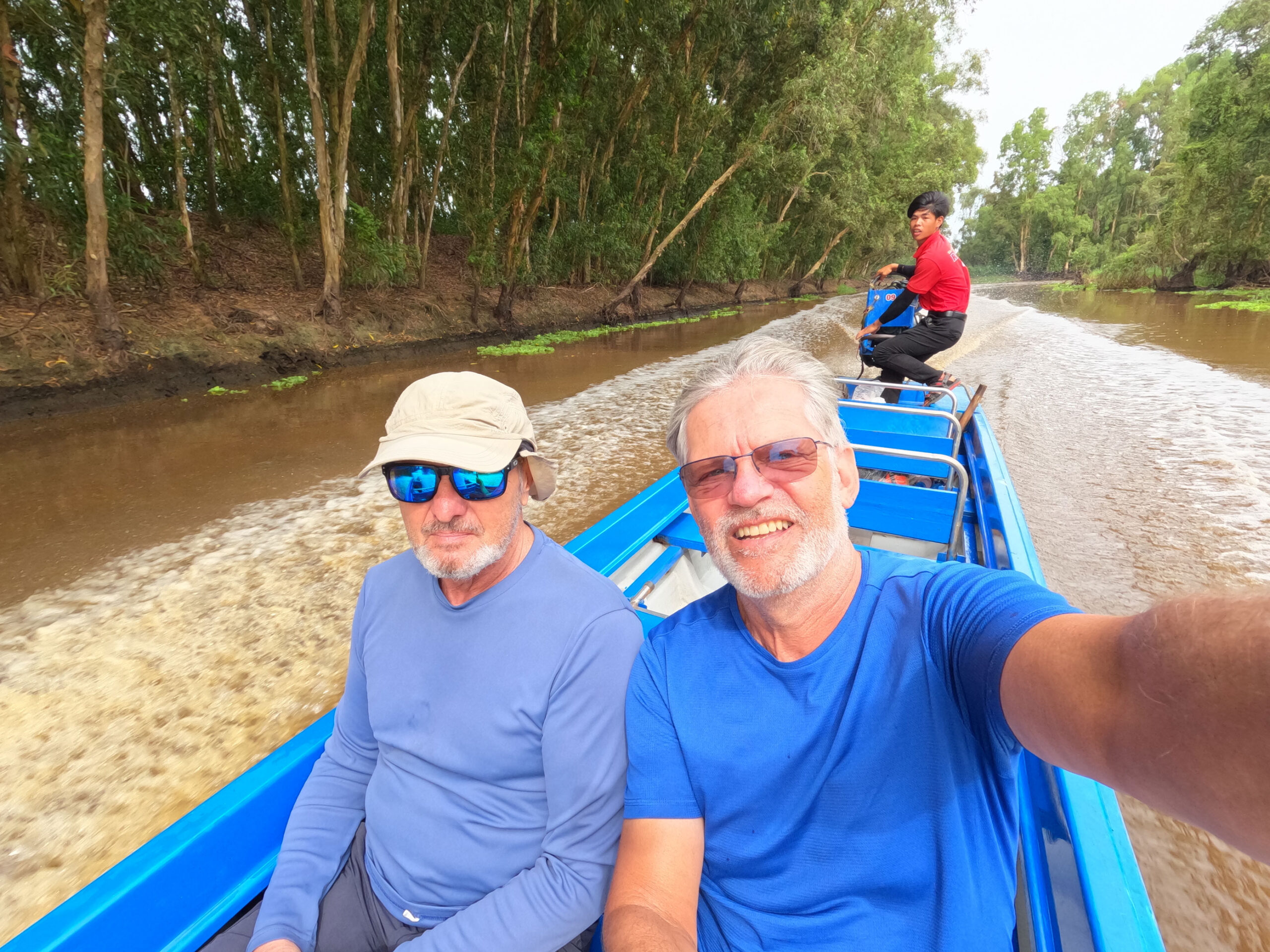 Aujourd’hui nous partons visiter La forêt de cajeputiers de Tra Su. C’est une jolie petite balade en « longs boats » à faire dans les méandres du delta.