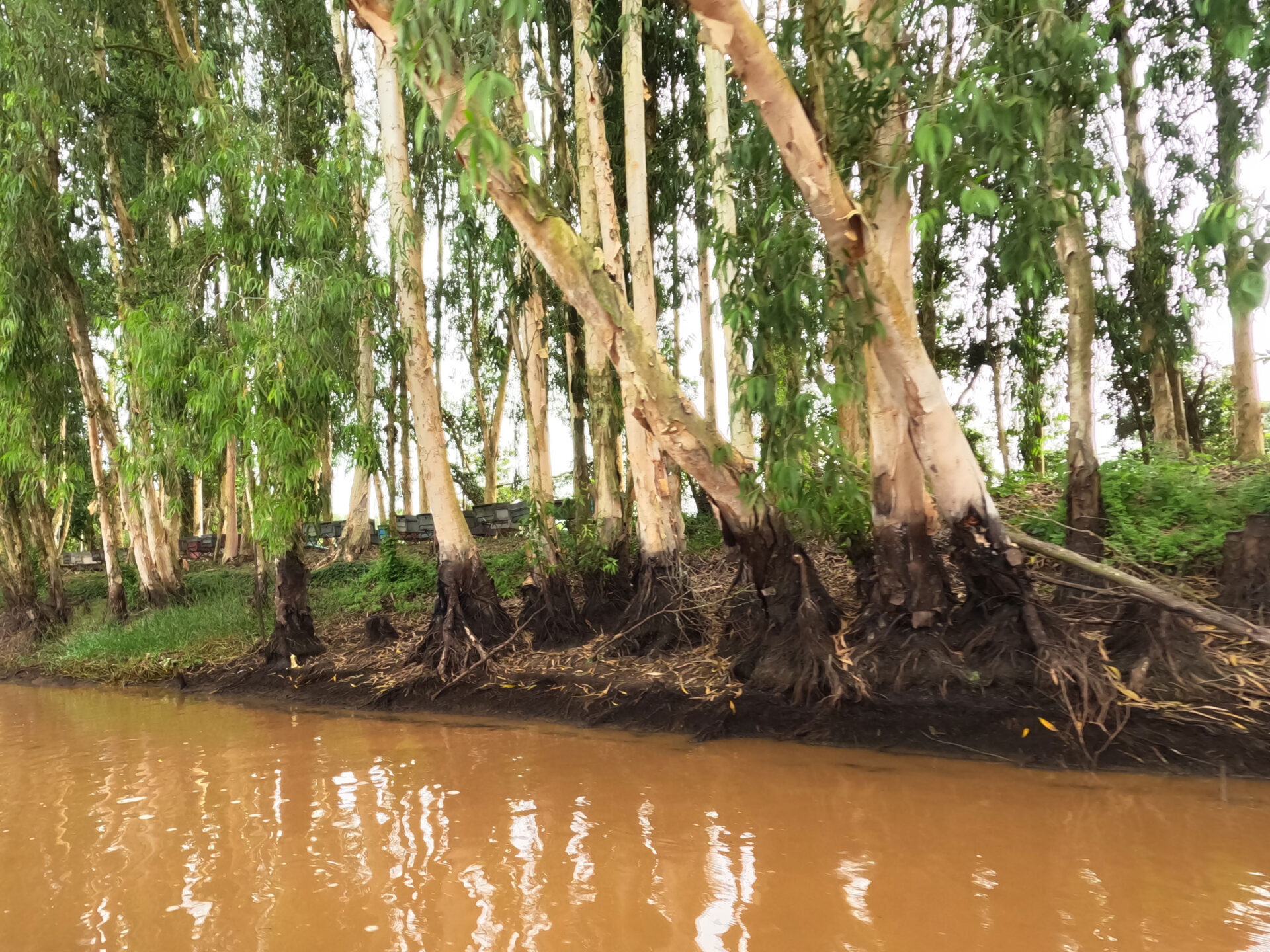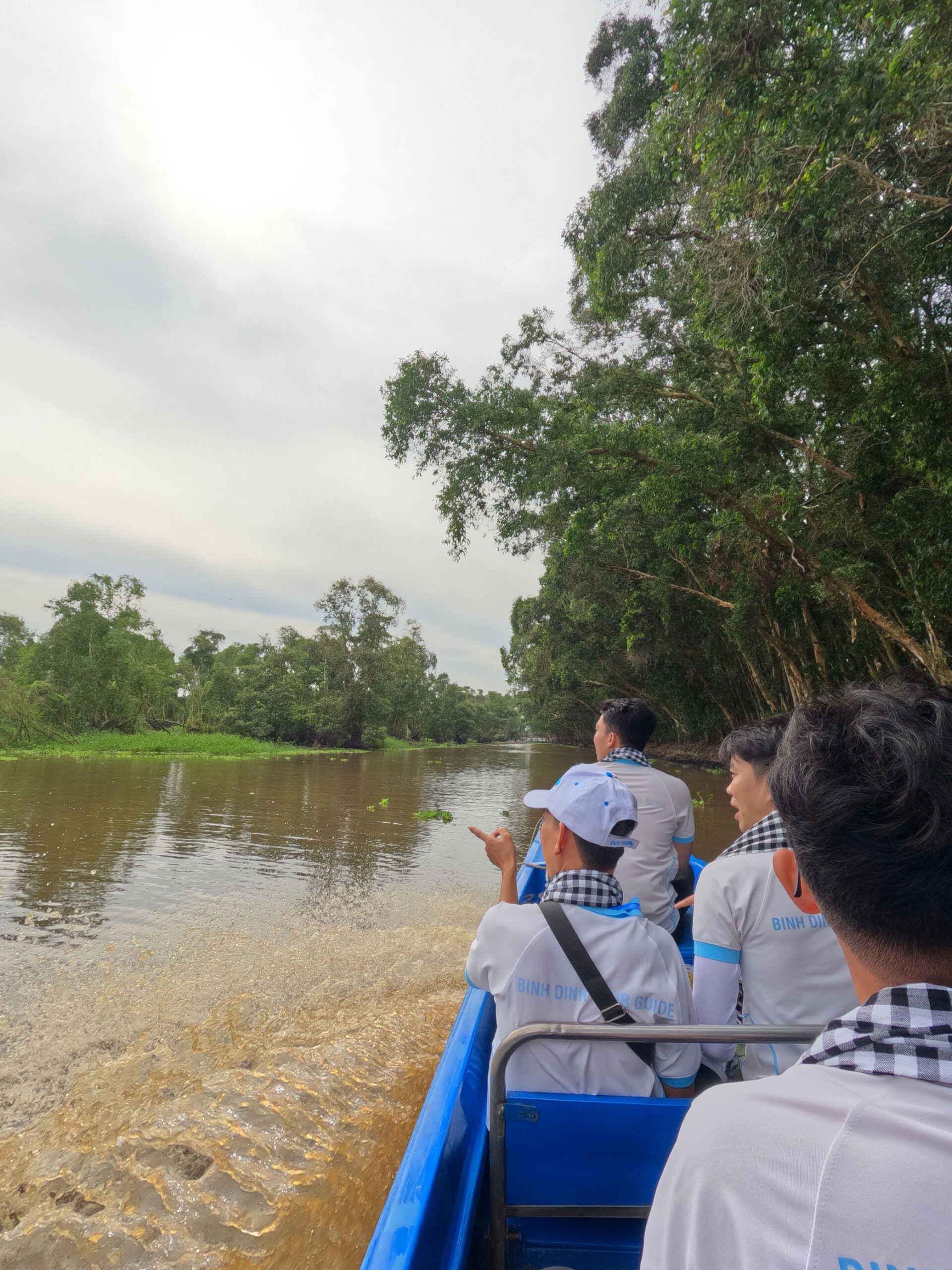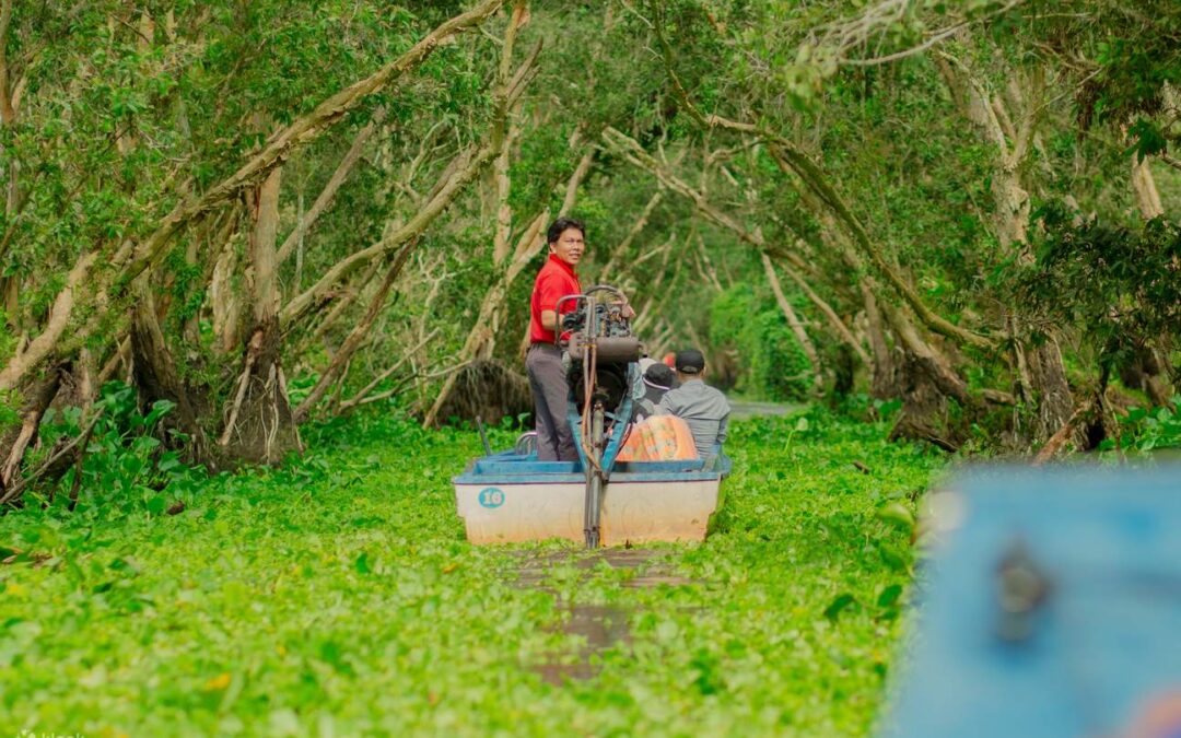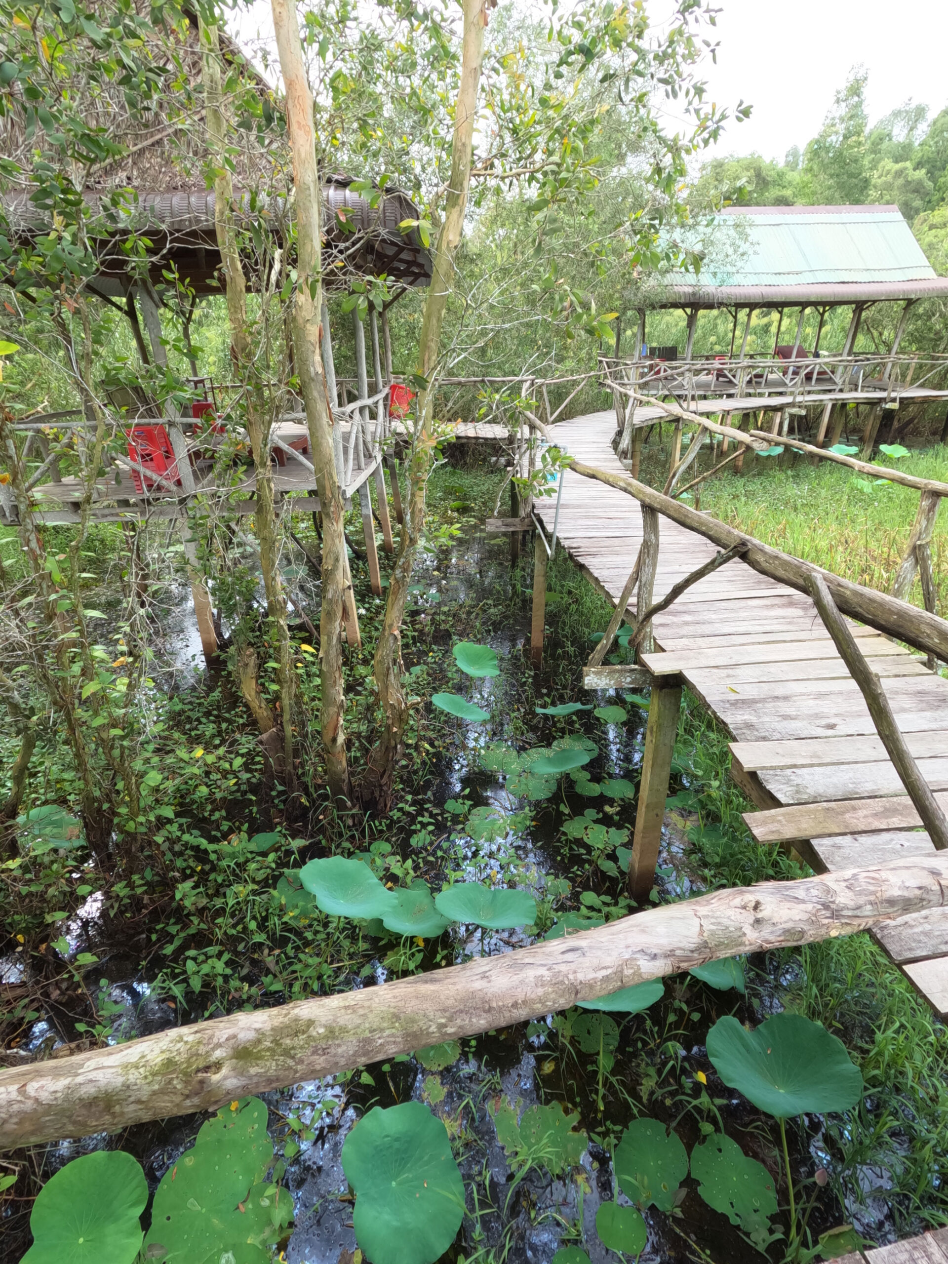 Aujourd’hui nous partons visiter La forêt de cajeputiers de Tra Su. C’est une jolie petite balade en « longs boats » à faire dans les méandres du delta.