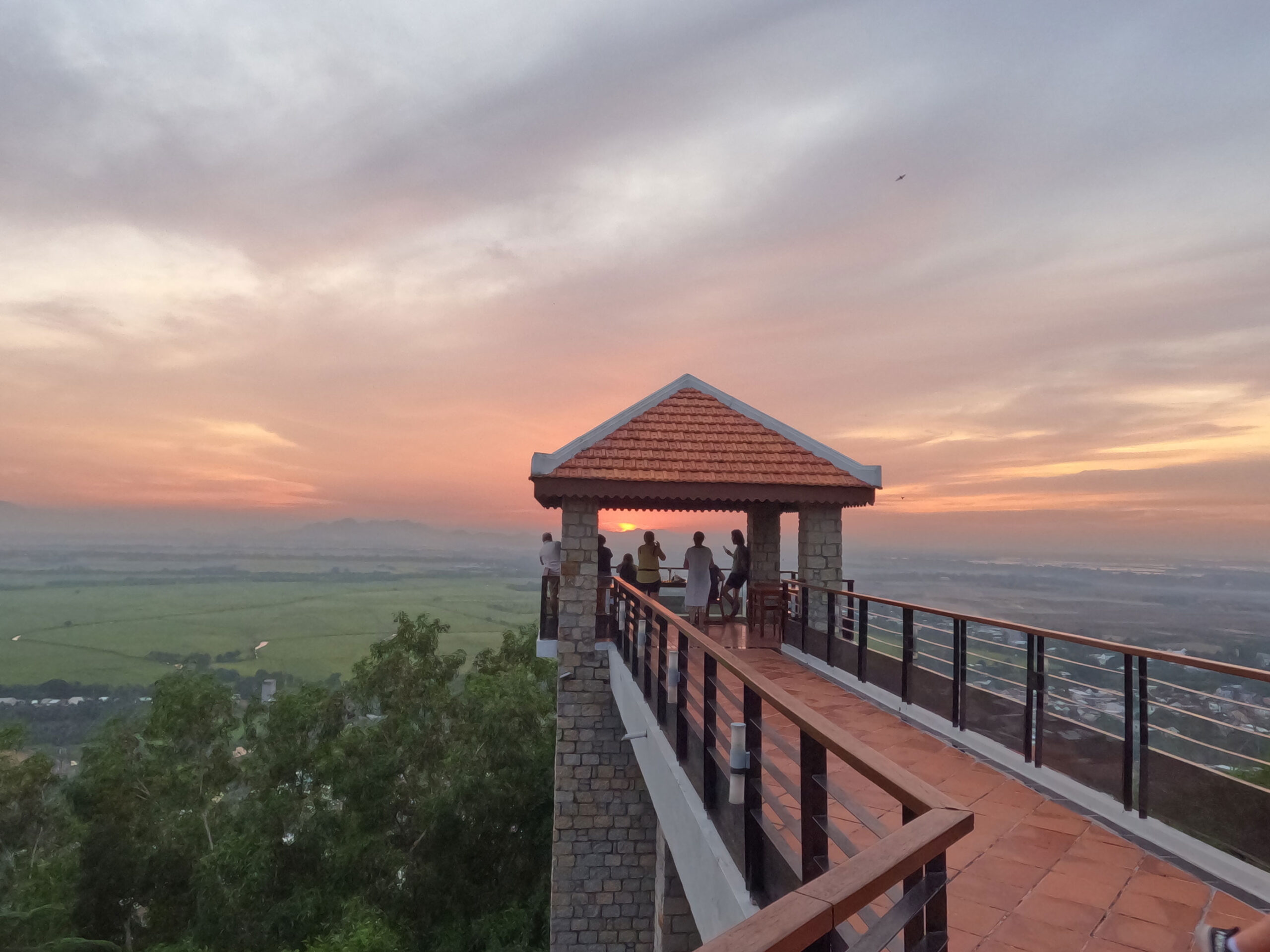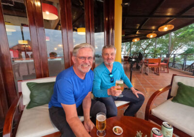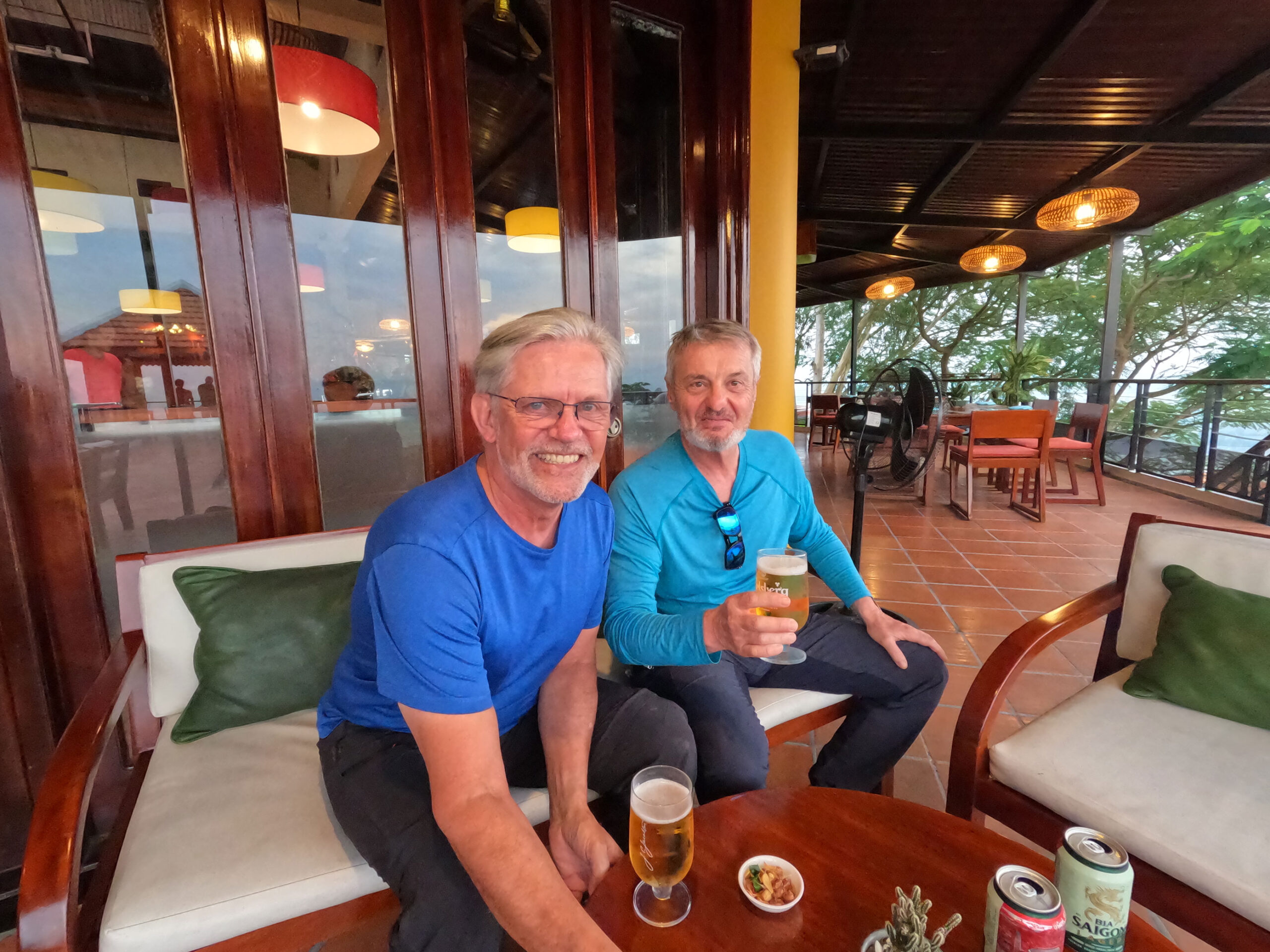 C’est l’heure de l’apéro, direction l’hôtel Victoria, pas celui qui est face à la lagune mais celui qui est sur la montagne Sam, où nous avons pu admirer un magnifique couché de soleil.