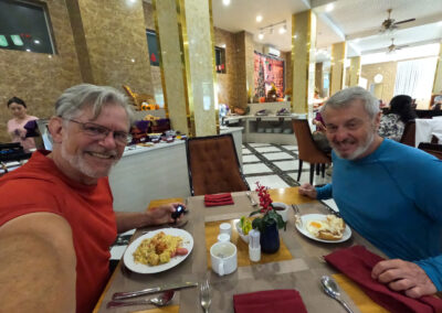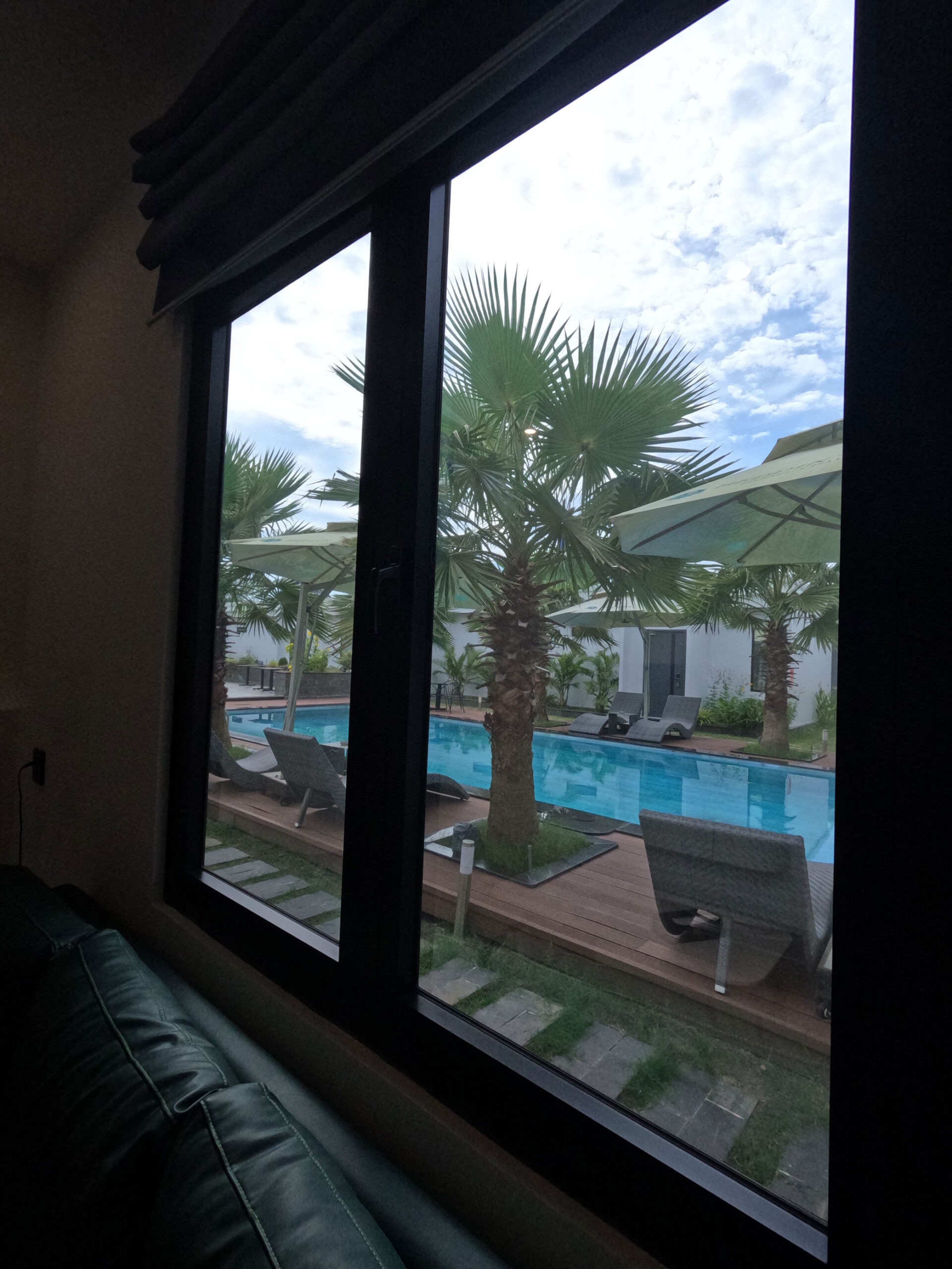 Un bungalow de 50 m², logé dans un cadre idyllique sur les berges du Mékong, entouré d’immenses forêts de cocotiers, avec vue sur la piscine, comprenant un salon équipé d’un mini bar gratuit, une salle de bain, une chambres de 25 m² pour 46 € la nuit, petit déjeuner compris et en plus le repas du soir est offert ! Mieux, ce serait indécent !