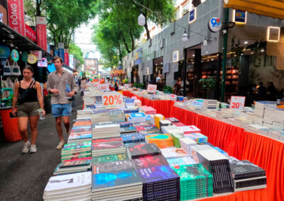 Nous flânons dans la rue des « bouquinistes » qui est attenante à la poste et en profitons pour faire une petite pause désaltérante.