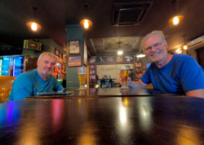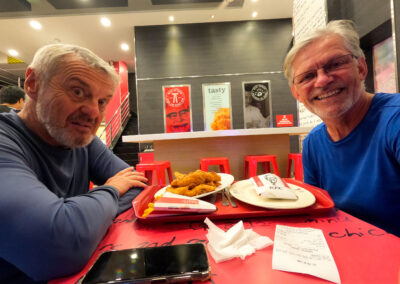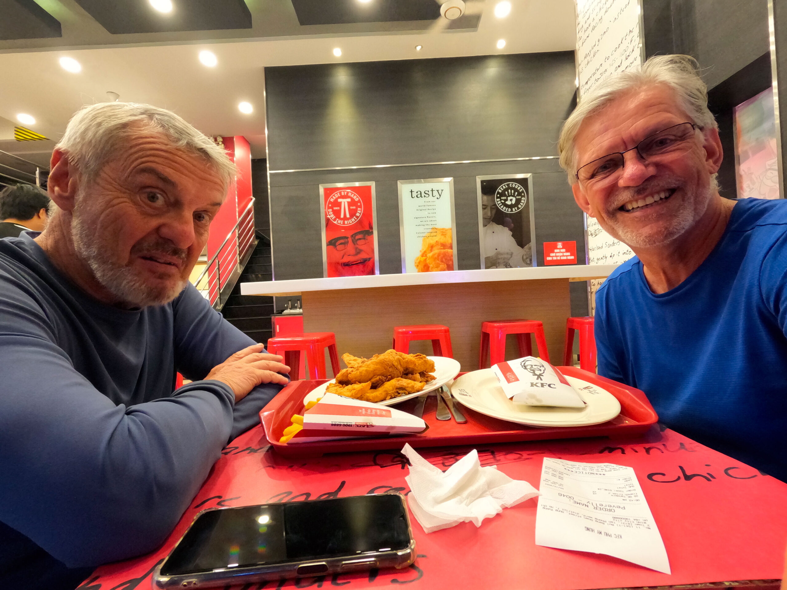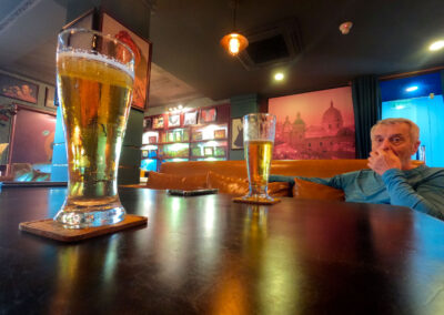 Une fois la préparation de nos sacs terminée, nous descendons boire deux bonnes bières pression avant d’aller diner au KFC.