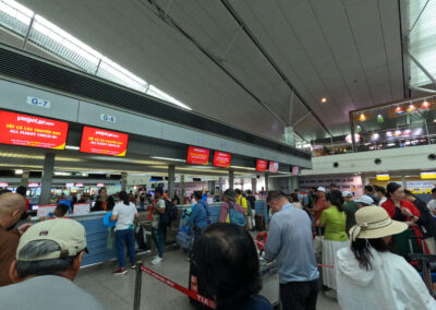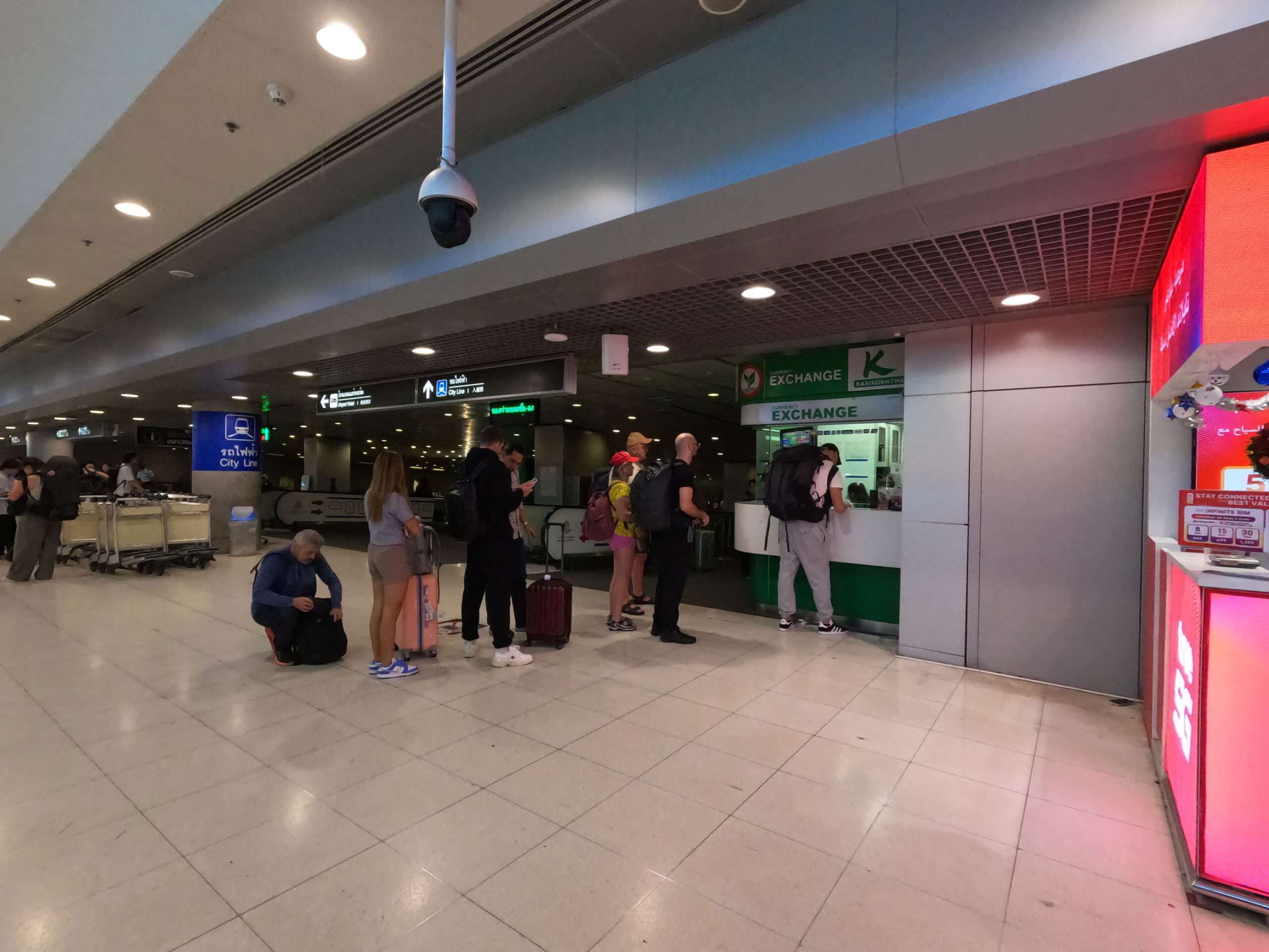 Arrivés à l’aéroport de Bangkok nous nous dirigeons vers un guichet de « change » et ensuite achetons une nouvelle carte SIM pour avoir la 5G et Internet.