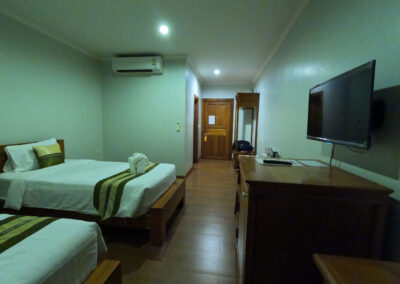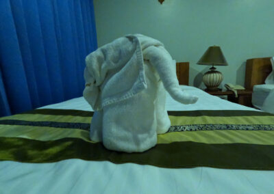 Après s’être rassasiés, nous appelons un « Grab » et 20 mn plus tard nous arrivons enfin à notre hôtel, le « Princess River Kwaï » au bord de la rivière du même nom.